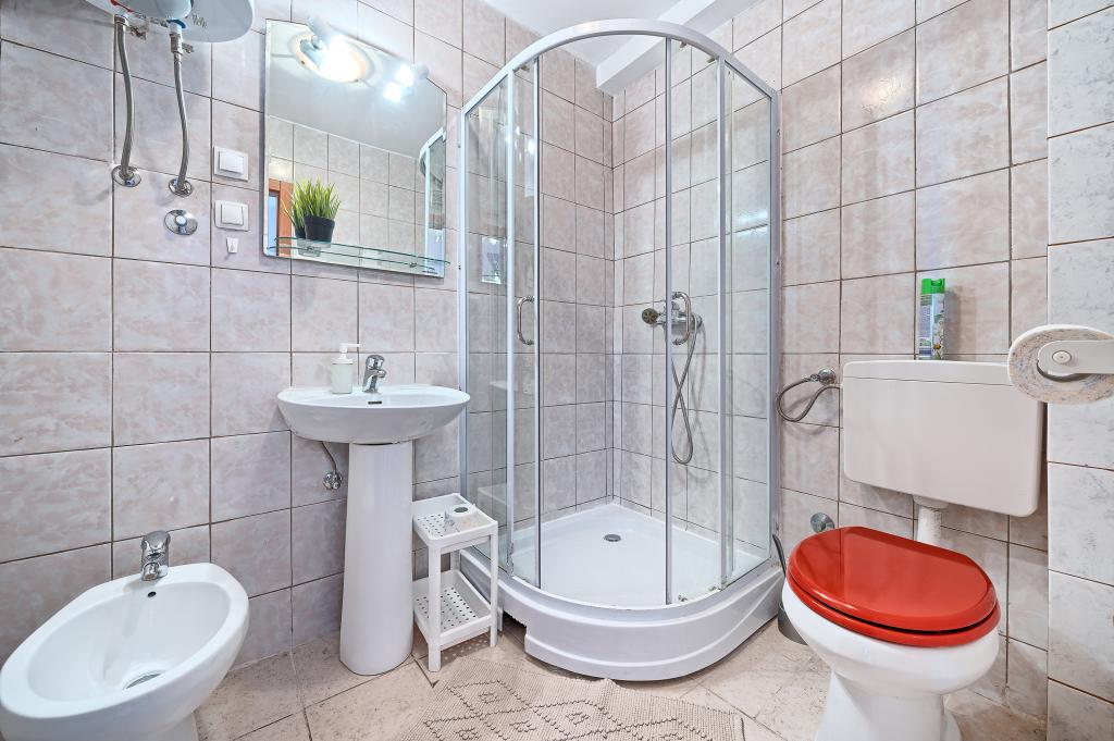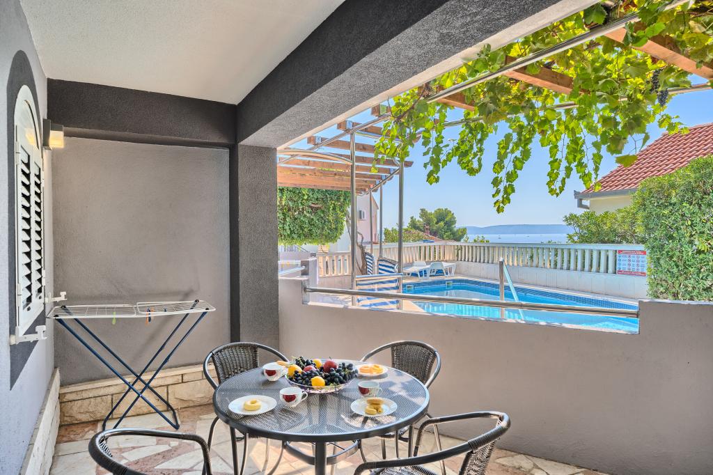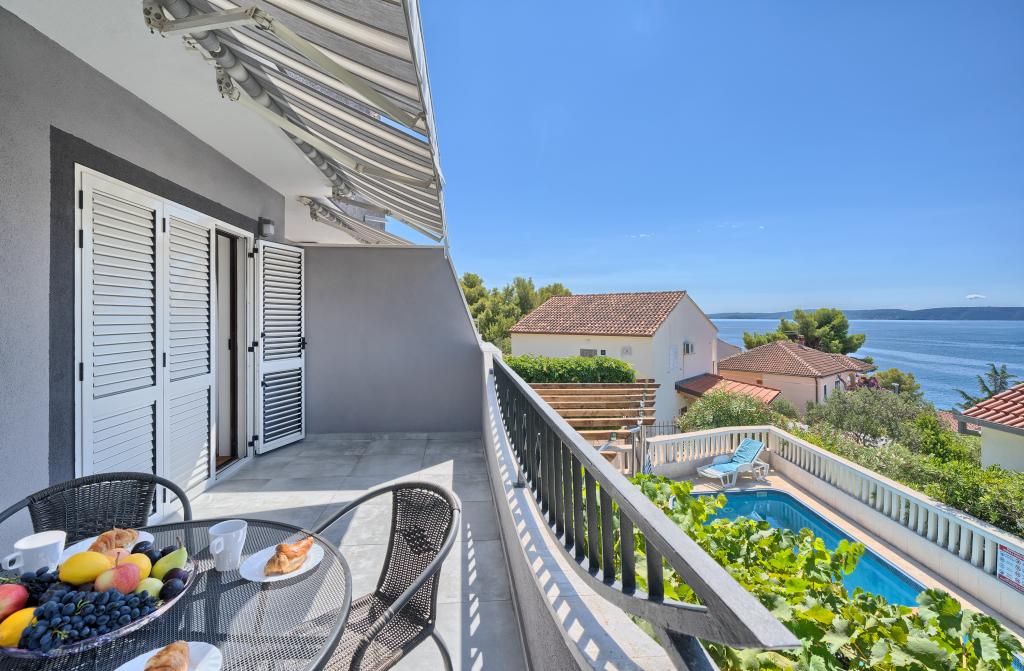 Espace absolument parfait, prix avantageux, appartement avec vue directe sur la mer et la piscine, douche extérieure au bord de la piscine et transats pour le confort des invités, la route vers le parking est vraiment assez raide et glissante, il nous manquait un magasin dans le voisinage, mais la qualité de l'hébergement compensait cela.