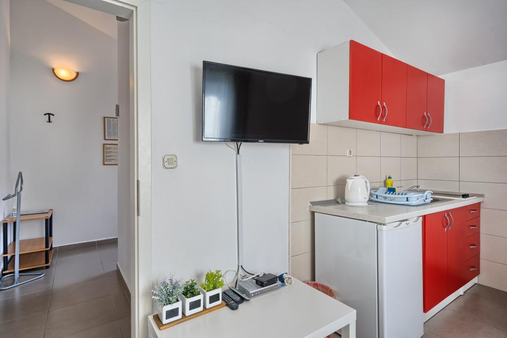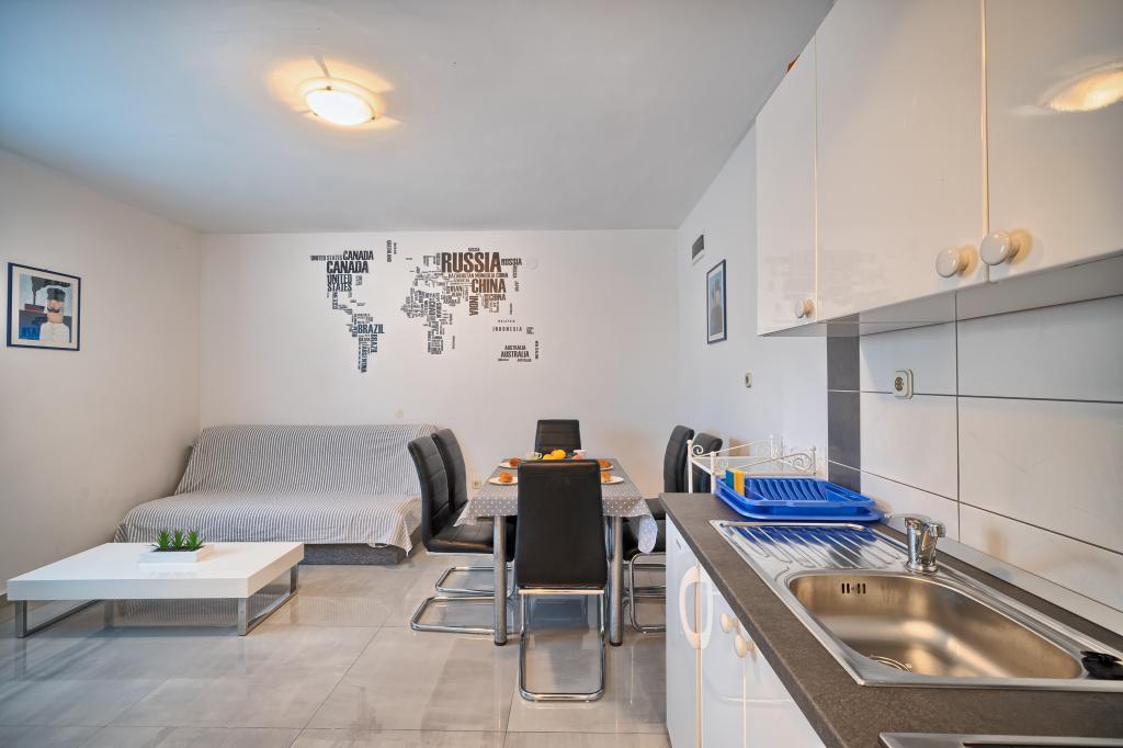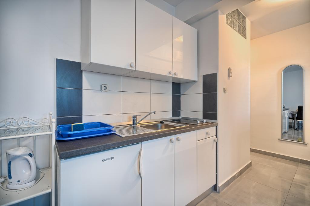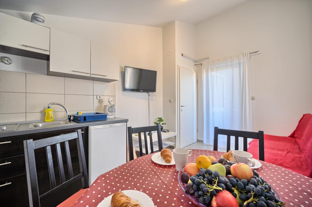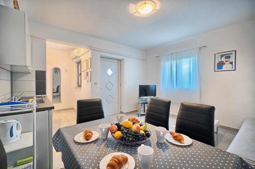 Taxe de sejour est inclus dans le prix.L'île de Ciovo offrira également une des criques paisibles et isolées, mais aussi des lieux de divertissement, des loisirs et du sport. Le côté ouest de l'île est particulière en raison des belles plages et criques tranquilles, ainsi que des installations exceptionnelles pour la pêche. Sur le côté est est parsemée de petites plages et des lieux de séjour paisible et reposant. Pour les plus aventureux, il est recommandé de louer un petit bateau à moteur et tour de l'île de Ciovo eaux et les îles voisines donnés sur le côté sud de Ciovo nombreuses criques isolées et idéal pour des vacances tranquilles. Pour ceux qui recherchent des activités sportives à Okrug Gornji sont des courts de tennis où vous pourrez déguster un sport "blanc". La baie Mavarštica est une école de plongée avec qui v