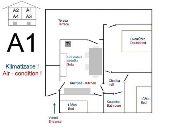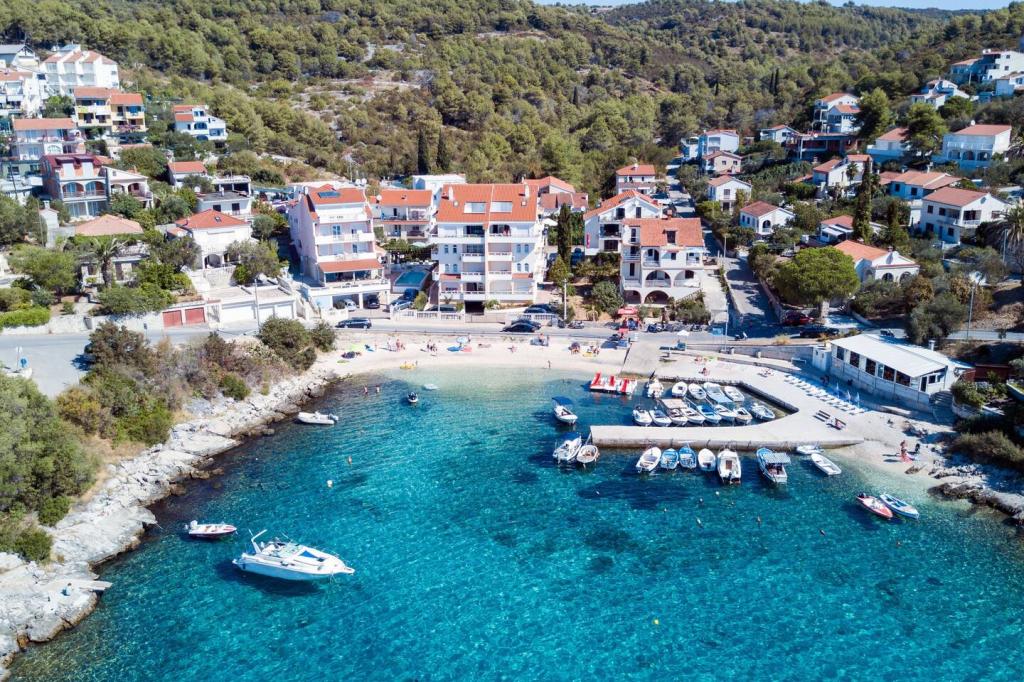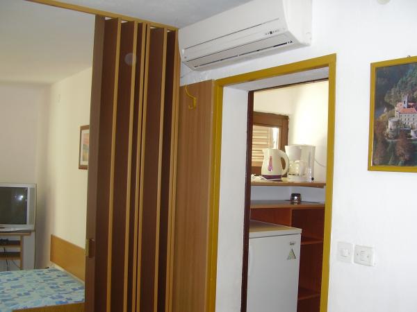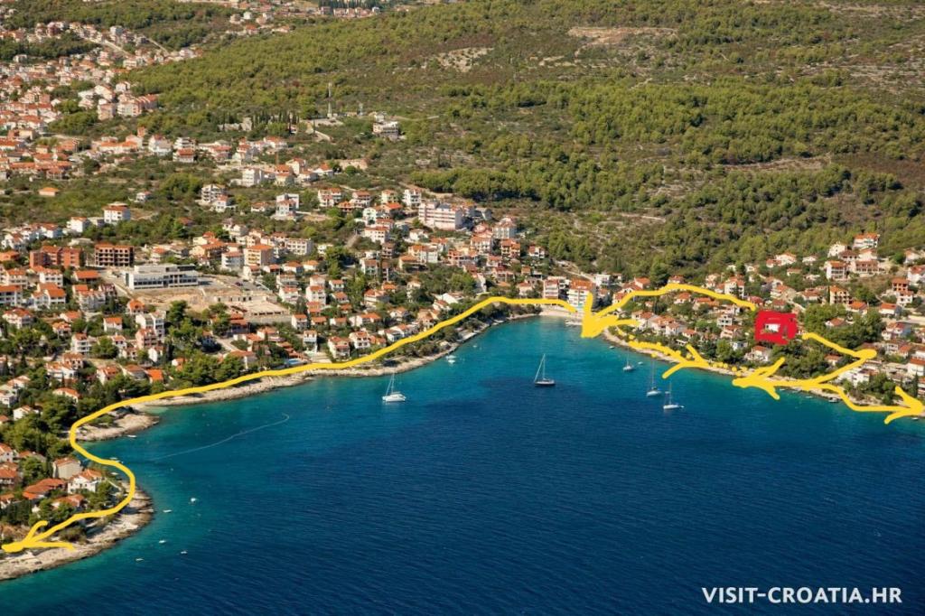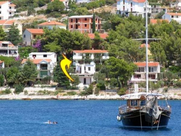 Taxe de sejour est inclus dans le prix.Gratuit, internet, climatisation. parking...Avec des frais minimes, des SERVICES DE BUANDERIE à domicile peuvent être obtenus. La nature préservée en bord de mer offre promenades et plages isolées. Les plages sont à 200m, de galets, de rochers... Le vélo est possible. il y a un court de tennis à proximité, et à 200 m de la maison il y a une école de plongée - sorties plongée, possibilité location bateau, scooter, , . parc aquatique amusant pour les enfants sur la plage locale. La ville de Trogir, classée au patrimoine mondial de l'UNESCO, se trouve à 5 km. LITS dans les appartements : A1 et A2 sont les mêmes et disposent de : UNE CHAMBRE MAJEURE et 2 chambres avec un LIT simple et un auxiliaire dans le SALON-BALCON d'environ 15m. A3 dispose d'une CHAMBRE COUPLE - PETIT BALCON, d'une CHAMBRE SIMPLE et de 2 LITS séparés dans le SALON - PETIT BALCON et dispose de 2 TERRASSE_DOUCHE 12 m, par lesquelles vous entrez dans l'appartement A4 dispose d'une CHAMBRE COUPLE - PETIT BALCON, canapé-120. cm de large dans le séjour et 2 LIT séparés dans le SALON - PETIT BALCON et disposent de 2 TERRASSE_DOUCHE 12m, par laquelle vous entrez dans l'appartement.