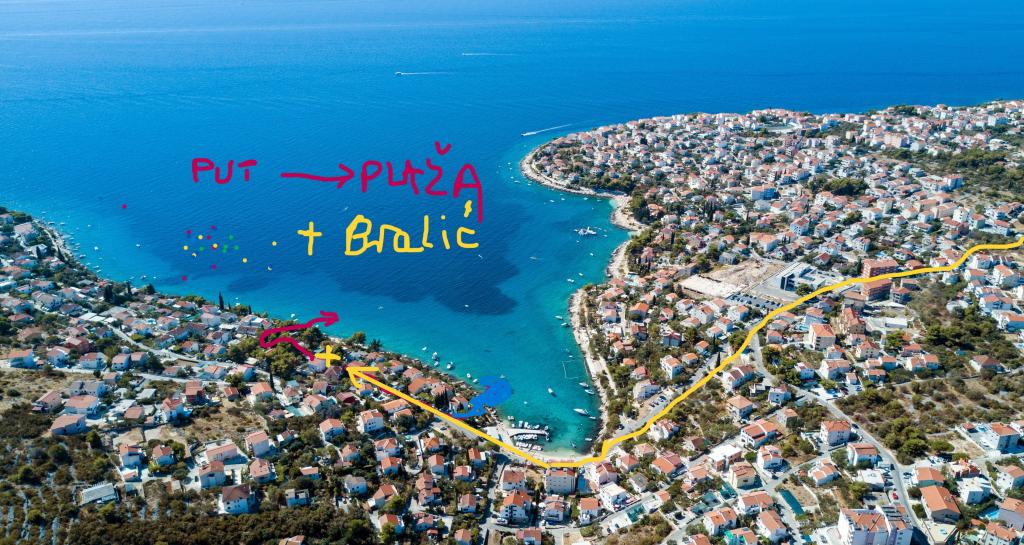 APPARTEMENTS FAMILIAUX-Bralić se trouvent du côté sud de ČIOVA avec vue sur l'île de ŠOLTA, dans un quartier calme de la baie de MAVARČICA. La maison est au deuxième rang de la mer, à 30 m par AIR PLAGE à 200 m. TOUS les appartements ont une entrée séparée DEPUIS LA COUR DE LA MAISON. Chaque appartement avec son séjour et sa SALLE DE MARIAGE et leurs balcons ont une vue sur la mer. A1 et A2 ont (une chambre de MARIAGE et 2 autres chambres avec 1 lit. A3 et A4 ont une CHAMBRE DE MARIAGE, 2 lits dans le SALON séparés par des portes Harmo de la Cuisine et un WC-douche à proximité de la chambre de MARIAGE et un WC- douche près du SALON. La cour dispose d'un parking pour 1 VOITURE PERSONNELLE POUR L'APPARTEMENT UNIQUEMENT. L'appartement A3 dispose d'une TERRASSE pour les PERSONNES jusqu'à 10 personnes. Comment trouver la maison Vous allez à MAVARČICA via le NOUVEAU pont et 4 autres. km sur la nouvelle route vers OKRUG GORNJI- Depuis le café-bar MAVARČICA, vous verrez (à droite) la rue KRALJA KREŠIMIRA et la maison est à gauche LA PLAGE EST EN PIERRE NOUS N'ACCEPTONS PAS.