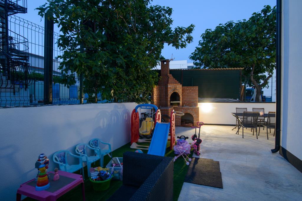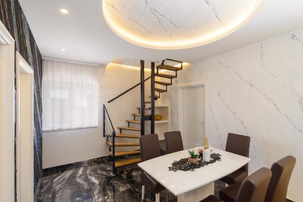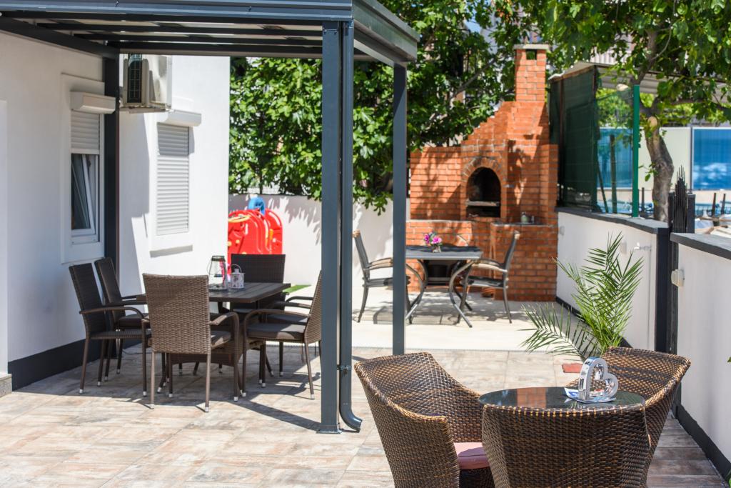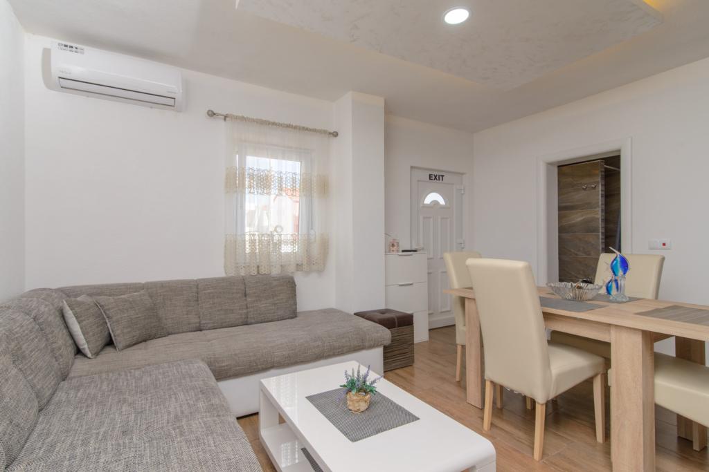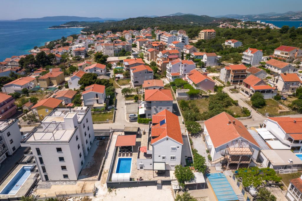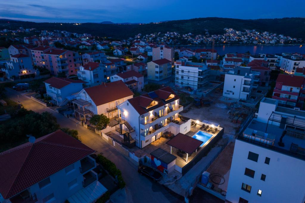 Les appartements sont situés dans le nouveau Villi ET A dans la ville d'Okrug Gornji, sur l'île de Ciovo, reliée à la ville historique de Trogir. Appartements entièrement et nouvellement équipés dans la belle partie de l'île de Ciovo. Seulement 70m de la mer. En face de l'appartement il y a une piscine et un grand grill. Les appartements contiennent tout ce dont vous avez besoin pour des vacances en famille avec les enfants ou les amis. La villa a été construite en 2017 et comprend sept appartements, tous modernes et adaptés au tourisme. La propriété est à 10 minutes à pied du centre de la ville où vous pouvez trouver: ambulance, pharmacie, poste, diverses marques, boissons avec des produits frais, une gamme de restaurants et de cafés et la célèbre plage de Copacabana. Et seulement 3, 5 km du centre de Trogir, vous pouvez passer par votre voiture, bus ou bateau. Nous souhaitons à tous les invités un accueil et un été agréables.