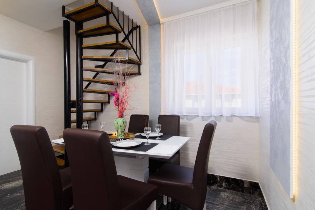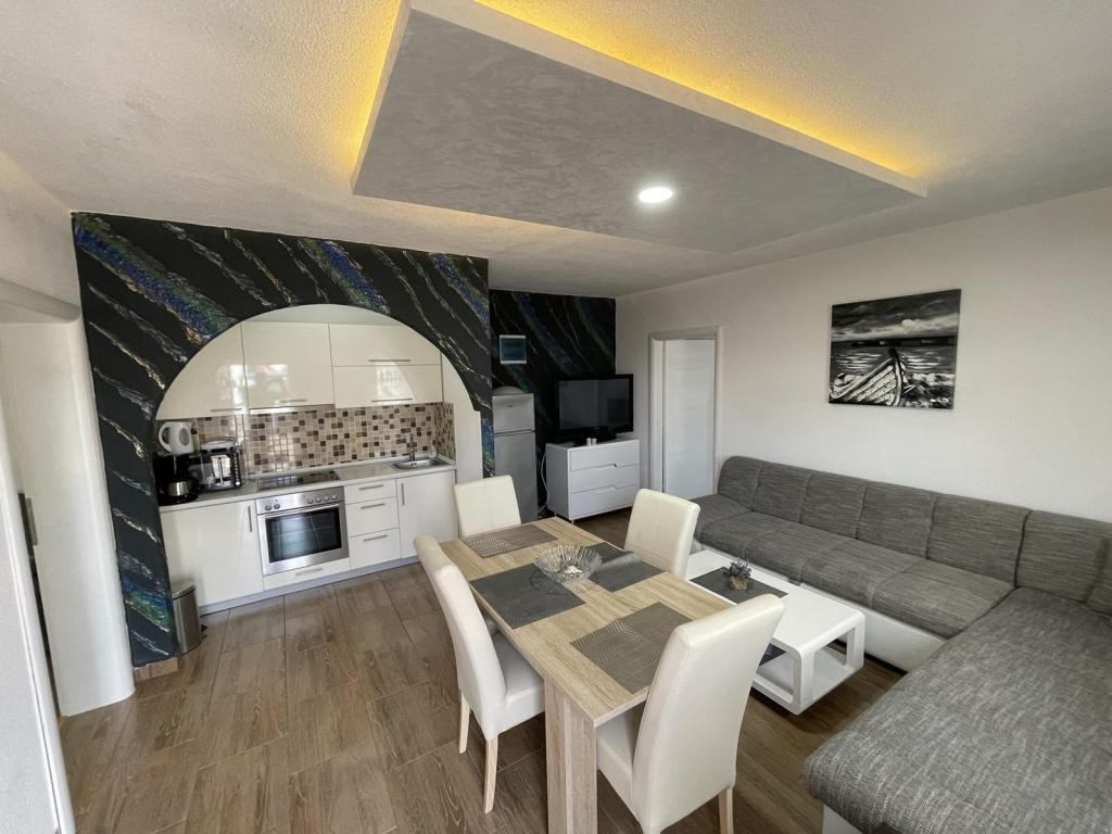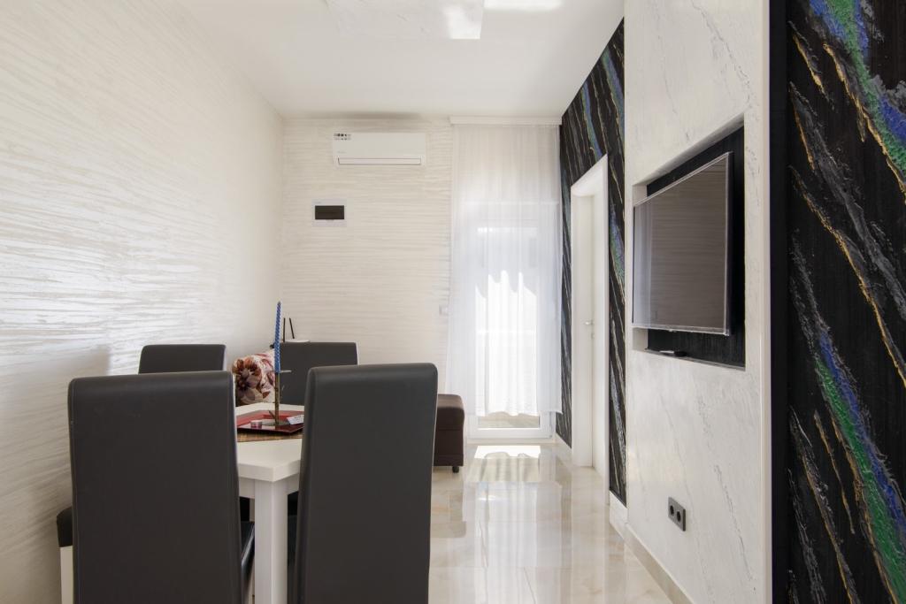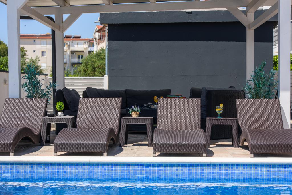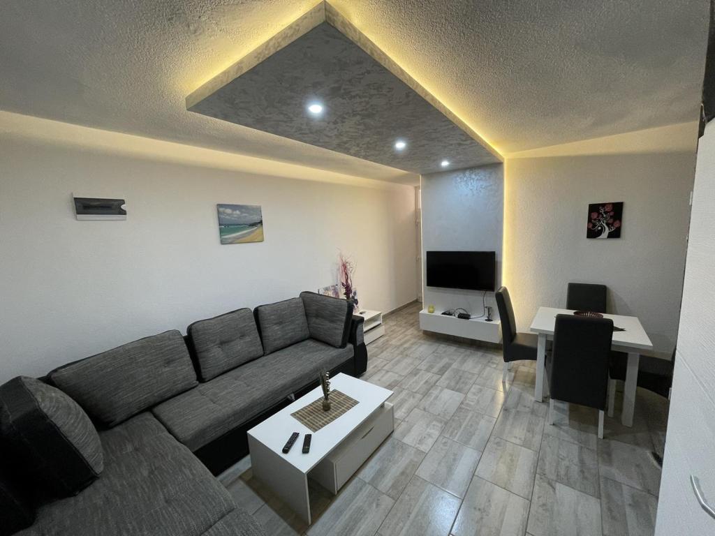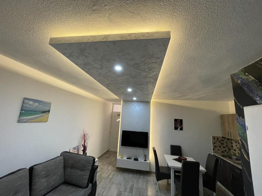 Les appartements sont situés dans le nouveau Villi ET A dans la ville d'Okrug Gornji, sur l'île de Ciovo, reliée à la ville historique de Trogir. Appartements entièrement et nouvellement équipés dans la belle partie de l'île de Ciovo. Seulement 70m de la mer. En face de l'appartement il y a une piscine et un grand grill. Les appartements contiennent tout ce dont vous avez besoin pour des vacances en famille avec les enfants ou les amis. La villa a été construite en 2017 et comprend sept appartements, tous modernes et adaptés au tourisme. La propriété est à 10 minutes à pied du centre de la ville où vous pouvez trouver: ambulance, pharmacie, poste, diverses marques, boissons avec des produits frais, une gamme de restaurants et de cafés et la célèbre plage de Copacabana. Et seulement 3, 5 km du centre de Trogir, vous pouvez passer par votre voiture, bus ou bateau. Nous souhaitons à tous les invités un accueil et un été agréables.