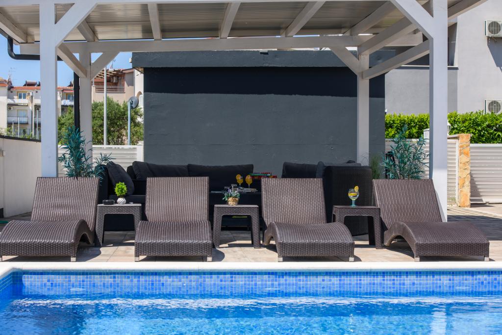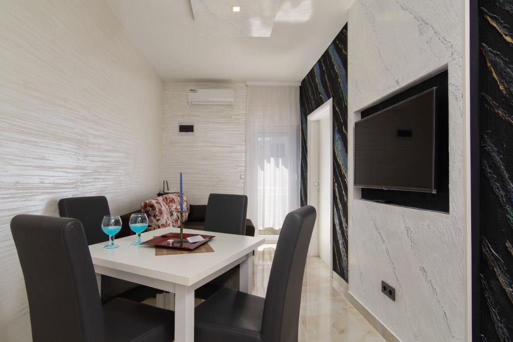 Taxe de sejour est inclus dans le prix.Les clients disposent d'un parking gratuit, d'une cabine de douche et de leurs propres meubles de jardin. L'utilisation gratuite de la climatisation, des articles de toilette, des draps et tout ce que l'appartement offre. Chaque appartement est entièrement équipé. Équipements: sèche-cheveux, serviettes de toilette, draps, grille-pain, bouilloire, four à micro-ondes, réfrigérateur avec congélateur, cafetière, fer à repasser, planche à repasser, télévision à écran plat, télévision satellite, coffre-fort ....