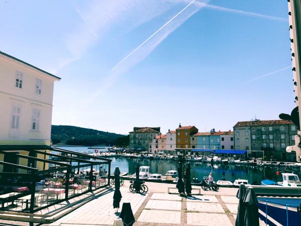 Appartement et chambre avec salle de bains sont situées dans le centre de la ville de Cres et ont une vue magnifique sur la mer et de la promenade.