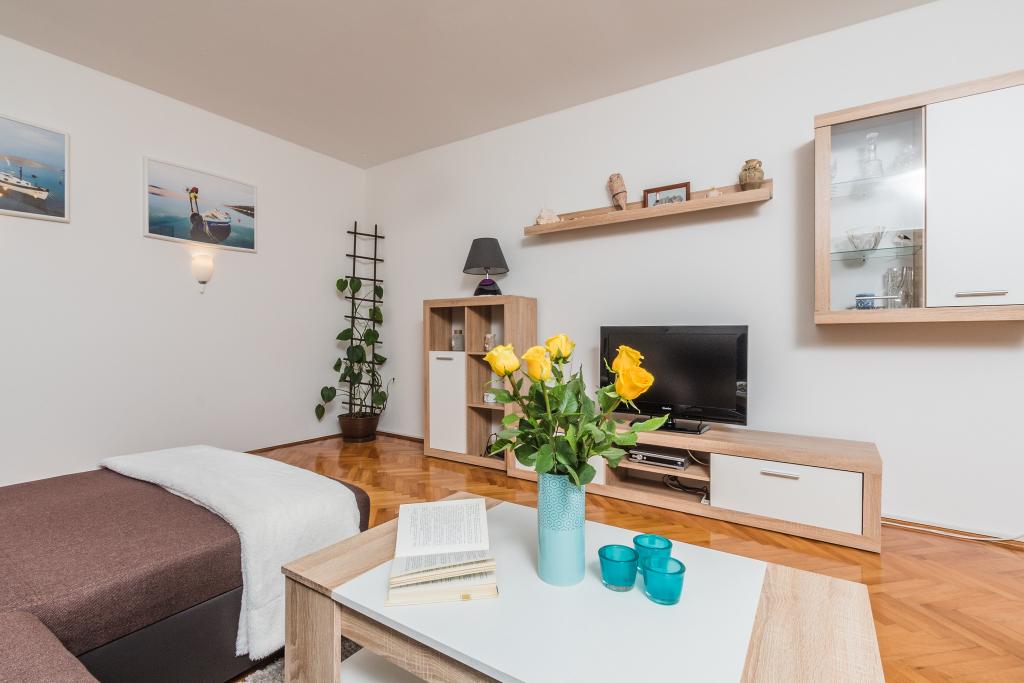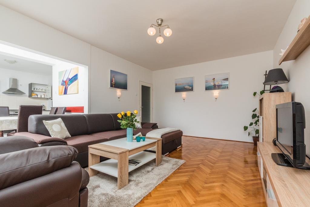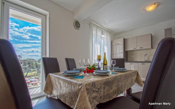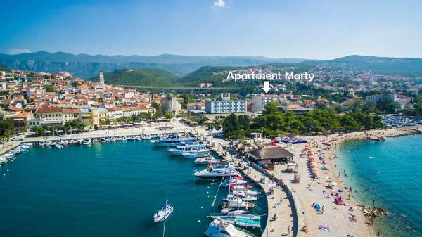 Appartement Marty est situé dans le centre de Crikvenica! L'appartement est 76m2 et est situé dans un immeuble résidentiel, au 2ème étage, et dans les appartements de moins de 50m se trouvent un bureau de poste, banque, commerces, gare de bus, plage. Il est très agréable et confortable, et se compose d'une cuisine entièrement équipée, salle à manger, salle de bain avec WC, WC, salon, deux chambres et un balcon. Le parking est public.