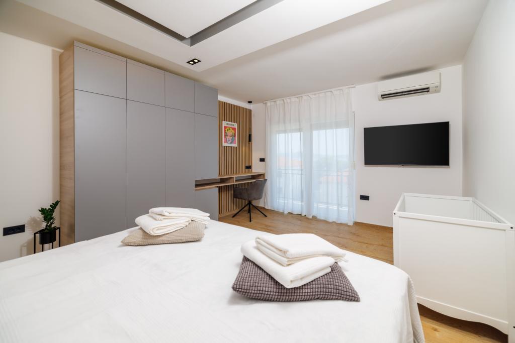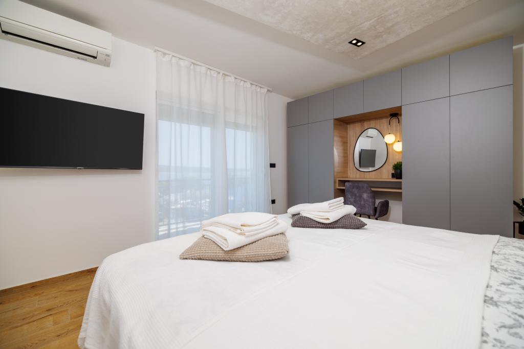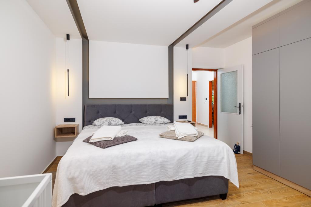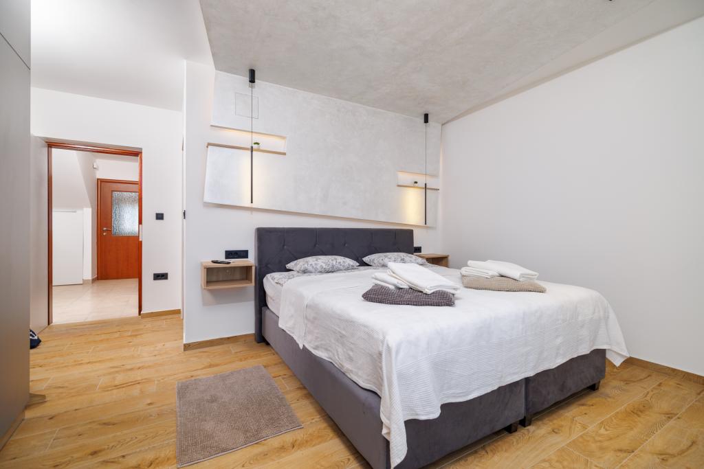 L'App Mladen nouvellement décoré, entièrement rénové dans un style moderne, est situé dans un quartier calme de la ville, à seulement 5 minutes à pied du centre et à 2 minutes à pied de la plage. L'appartement est adapté pour des vacances agréables et paisibles. La plage la plus proche se trouve à seulement 50 m de l'appartement. La proximité du centre (300 m), un parking gratuit, Internet (wi-fi) et la climatisation sont d'autres avantages que nous offrons à nos clients. L'appartement est équipé de meubles modernes ainsi que de tous les autres appareils. Séjour (canapé convertible 2 personnes, carrelage, espace jeux pour enfants). Cuisine (plaque électrique, four, réfrigérateur avec congélateur, cafetière, four micro-ondes, lave-vaisselle, bouilloire, torchons). Chambres : (2 chambres doubles avec un lit double dans chaque chambre). Salles de bains (salle de bain avec WC, douche et lavabo, et salle de bain avec WC, baignoire, lavabo et lave-linge). Balcon / Terrasse (propre balcon, partiellement couvert, avec vue mer, sièges, taille du balcon : 12m