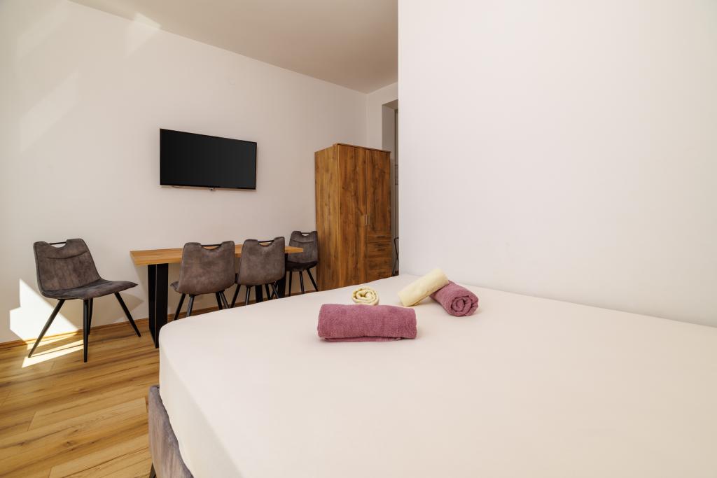 Nous avons séjourné au Jacuzzi Studio Pepi du 18/08/2019 au 23/08/2019, moi et ma femme. Nous sommes plus que satisfaits de cet hébergement car il correspondait à la description des soumissionnaires. L'installation était extrêmement propre et rangée, tout le matériel nécessaire pour rester dans un appartement était disponible (couverts, ustensiles de cuisine, etc.). Les serviettes ont également été mis à notre disposition et ont été remplacées le troisième jour. Une personne dans notre pays préférerait de tels soumissionnaires. L'année prochaine, la même destination et le même hébergement, je ne peux que recommander.