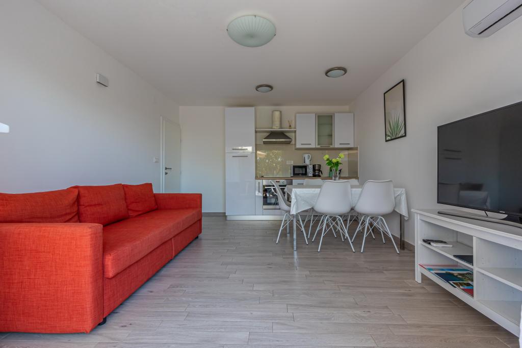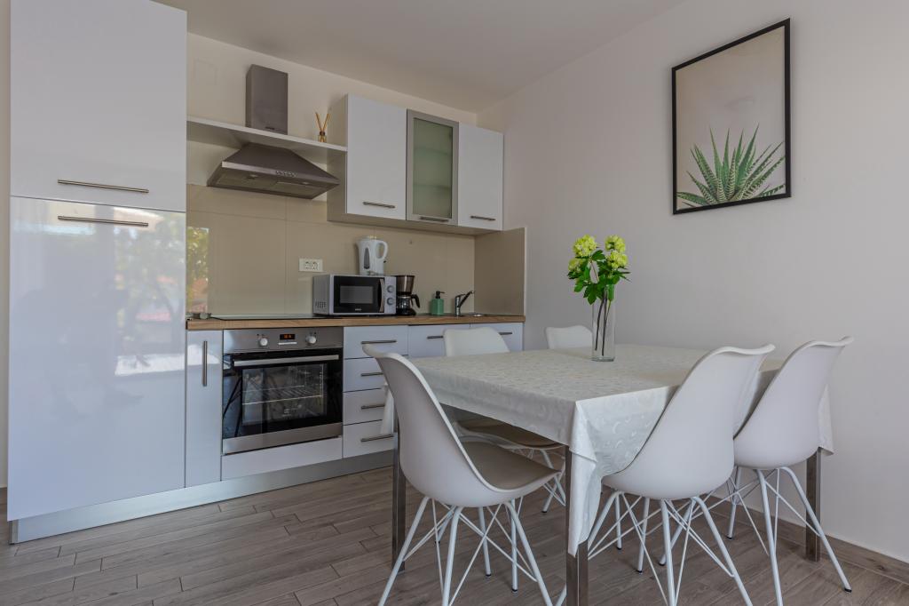 L'installation est exceptionnellement propre, bien rangée, régulièrement entretenue, belle en un mot. Comme le montre l'annonce, en réalité, c'est encore plus beau. Matea est adorable et merveilleuse, très culturellement dévouée au confort des invités et vous avez l’impression que vous êtes vous-même et que vous n’êtes personne. Dans l'appartement, vous avez absolument tout, changeant régulièrement les serviettes et la literie, toutes les chambres sont climatisées, tous les appareils sont neufs, ainsi que tous les meubles. Parking juste devant le bâtiment. Tout est très proche, plage, promenade, marché, restaurants ... 3-5 minutes à pied. La connexion Internet est excellente dans l'établissement, et vous avez l'internet et sur la plage qui vous prend environ 3 minutes à pied en bas des escaliers. Recommandation et vous ne vous repentirez pas.
