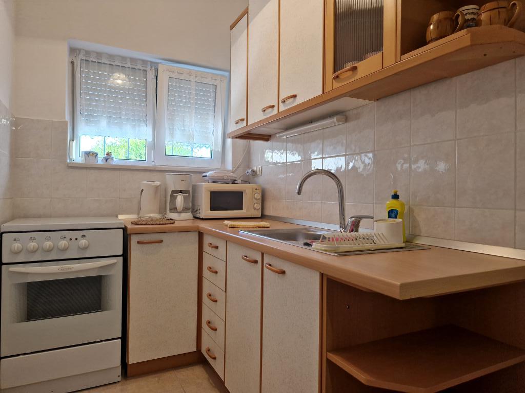 Je recommande le logement, les hôtes sympas, l'appartement bien équipé, il ne manquait qu'une bouilloire électrique, mais sinon tout allait bien. La salle de bain est spacieuse. A proximité des commerces Konzum et de la boulangerie. L'appartement ne possède pas de balcon, mais il y a une sorte de terrasse avec des tables, des chaises longues et un parasol. Je recommande.