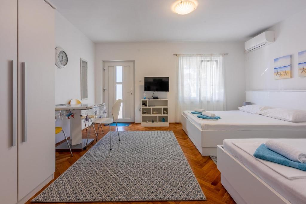 Nos appartements sont situés dans un quartier calme de Crikvenica, à proximité de toutes les commodités nécessaires à des vacances de qualité. La maison dispose d'un grand jardin verdoyant.