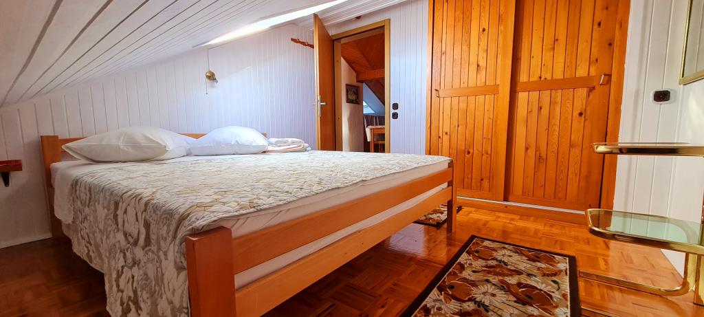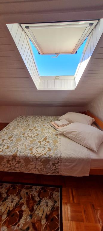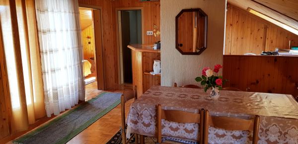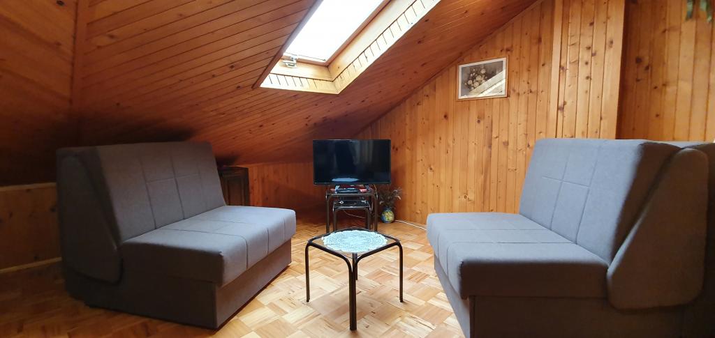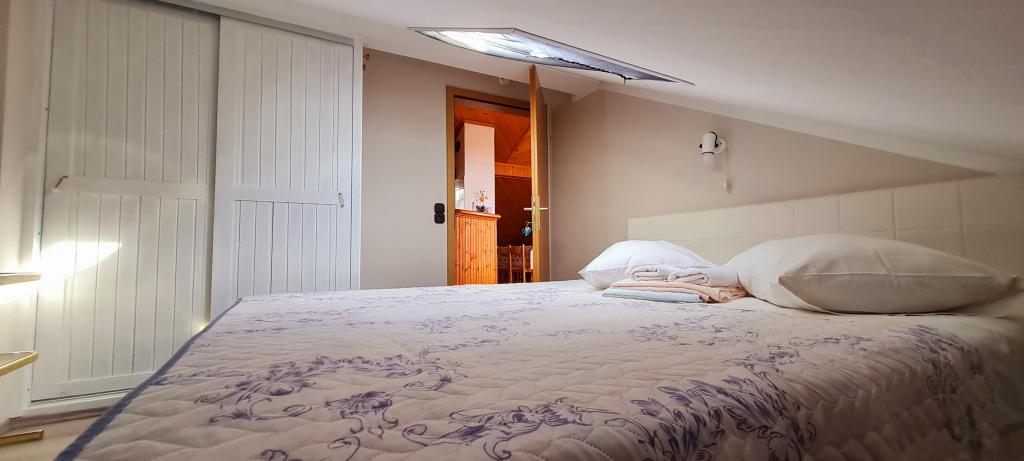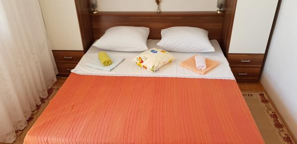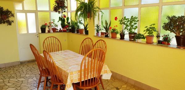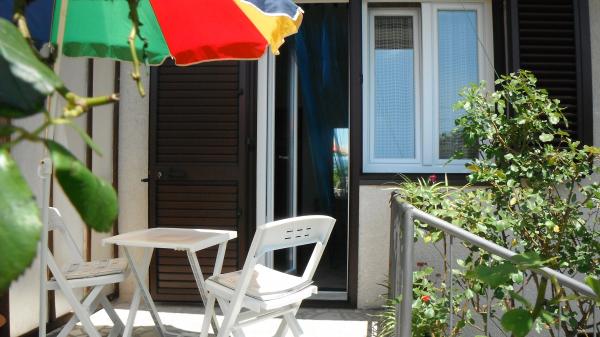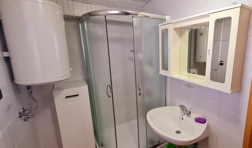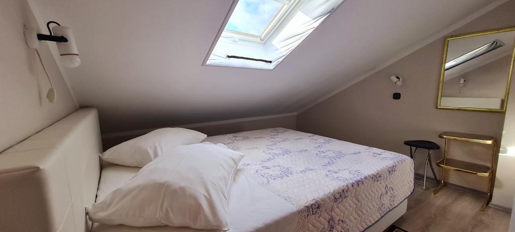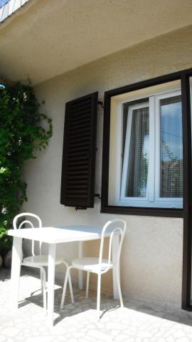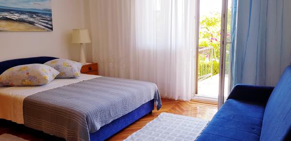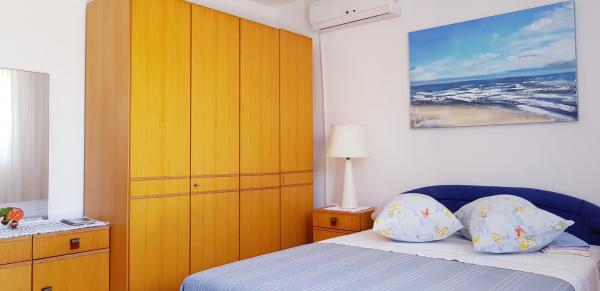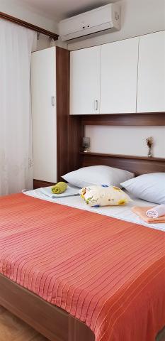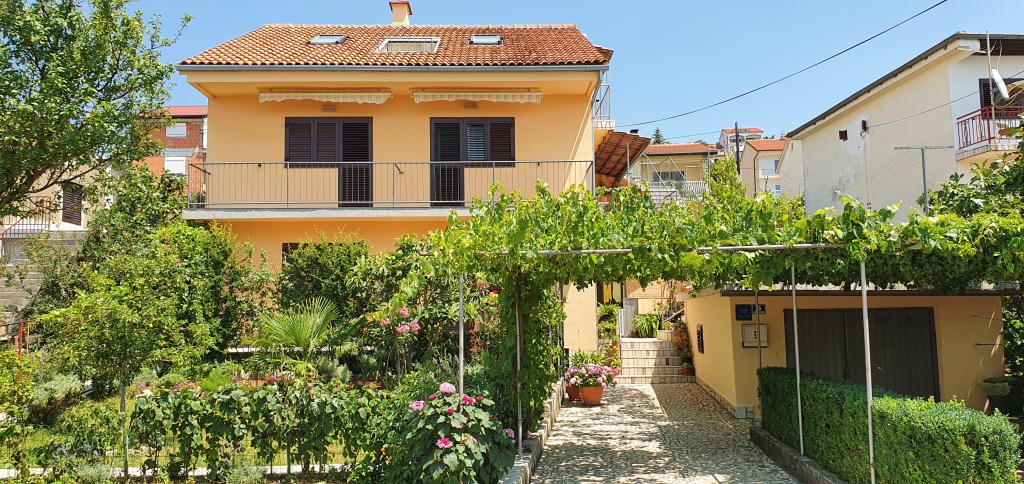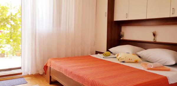Le 1er appartement est situé dans les combles et se compose de 2 chambres avec lits doubles, d'une salle de bain avec douche, d'un salon avec 2 canapés-lits, d'une cuisine et d'une salle à manger, d'un plus petit balcon avec vue sur la mer, d'un plus grand terrasse sur le toit et une entrée indépendante. Le 2ème appartement est situé au rez-de-chaussée et se compose de 2 chambres avec lits doubles (1 lit supplémentaire dans chaque chambre), salle de bain avec douche, cuisine, grande terrasse fermée avec table à manger, petite terrasse de jardin, grande terrasse avec vue sur la mer et une entrée indépendante. Chambre avec lit double, salle de bain privée avec douche, terrasse de jardin avec sièges et entrée indépendante.