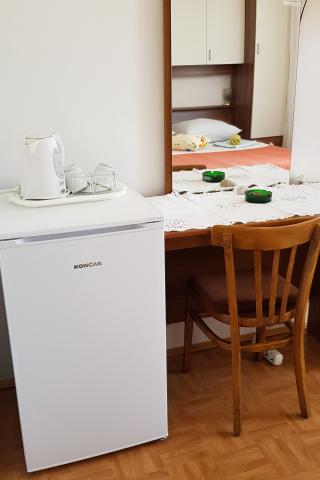 Dans la maison familiale Jela, vous avez à votre disposition deux appartements spacieux et une chambre confortable avec sa propre salle de bain. A environ 600 m de la mer, la maison Jela est située dans un quartier calme de la ville avec une belle vue sur la mer et l'île de Krk. Pendant les mois d'été, il est préférable de laisser la voiture sur l'une des nombreuses places de parking du jardin et de se rendre sans soucis à la plage la plus proche ou au centre-ville (10-15 minutes à pied). Si vous n'avez pas envie de marcher, le bus urbain qui passe devant nos installations réduira considérablement ce trajet. Les appartements et les chambres sont équipés de la climatisation, de la télévision par satellite, d'une connexion Internet WLAN, de salles de bains avec douche, de terrasses ou de balcons spacieux avec vue sur la mer équipés de sièges. Il y a un mini-réfrigérateur et une bouilloire dans la chambre, tandis que les cuisines des appartements sont équipées d'un micro-ondes, d'un réfrigérateur, d'un four et de tout le nécessaire pour préparer et servir les repas. Arrivée à partir de 13h00 et départ jusqu'à 9h00 du matin.