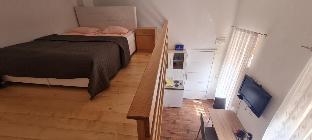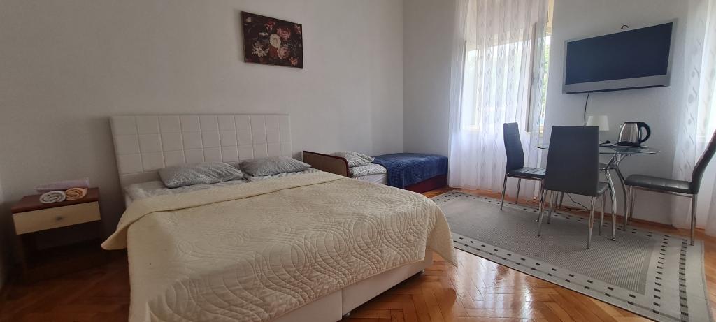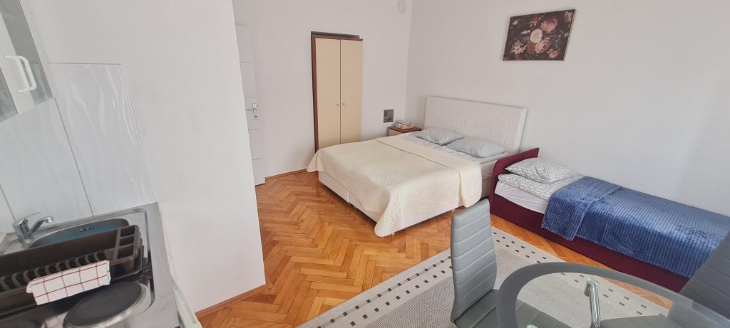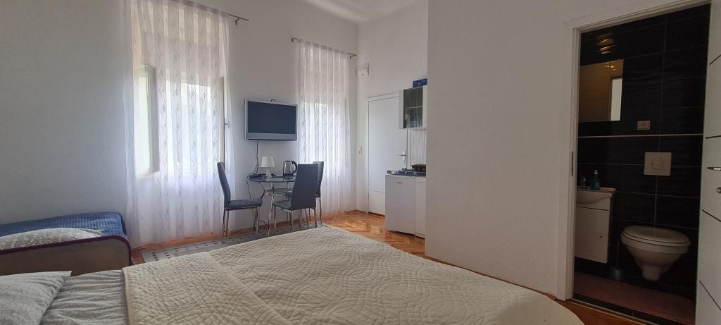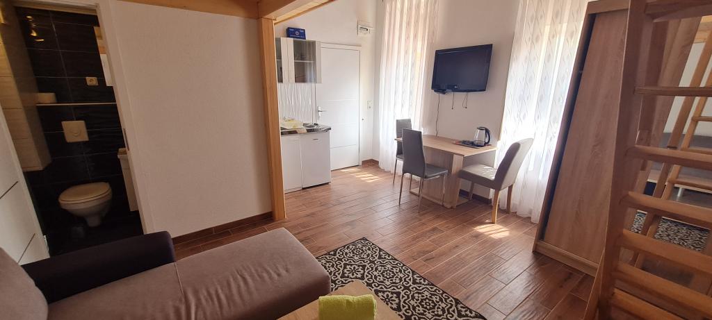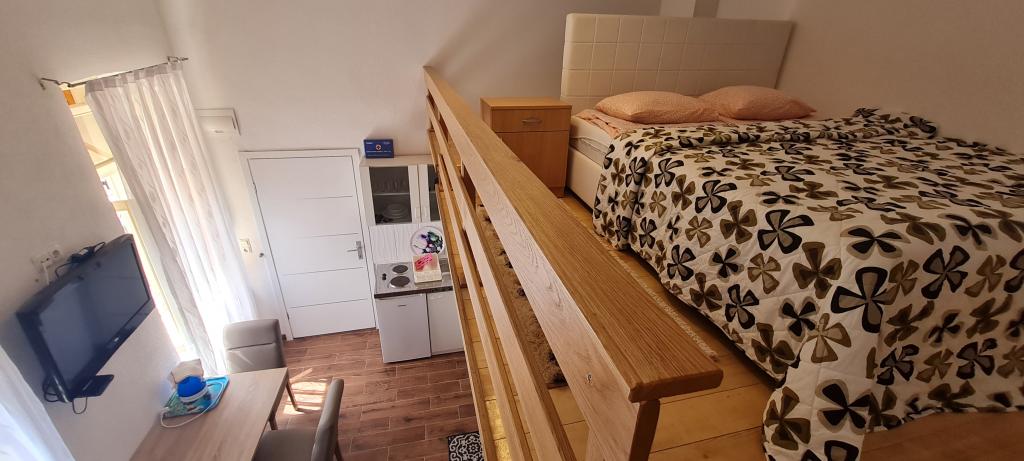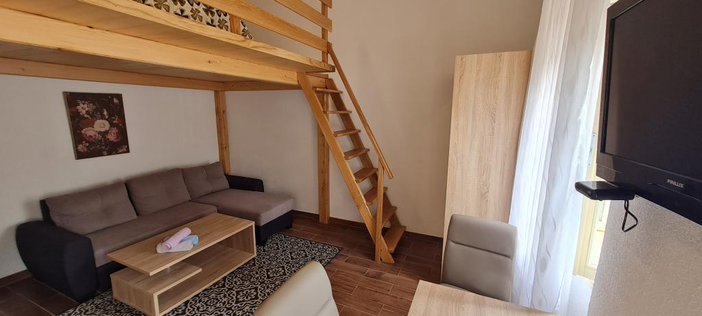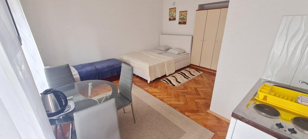 Les appartements neufs et équipés de façon moderne Sara sont situés dans un quartier calme, à seulement 200 mètres du centre de Crikvenica. Grâce à son excellent emplacement, toutes les commodités de la ville sont à 5-10 minutes à pied (plages, restaurants, bars, magasins...). Deux studios au rez-de-chaussée du bâtiment sont disposés sur deux niveaux : dans la partie inférieure se trouvent un salon spacieux, une cuisine avec une table pour servir les repas et une salle de bain avec douche, tandis que la chambre avec un lit double est situé sur la galerie. Les deux studios restants au premier étage du bâtiment contiennent chacun 3 lits, une cuisine avec une table pour servir les repas et une salle de bain avec douche. Tous les appartements sont équipés de climatisation, TV satellite, Internet WLAN, tandis que les cuisines sont équipées de plaques de cuisson, d'un réfrigérateur, d'une bouilloire et de toute la vaisselle nécessaire à la préparation et au service des repas.