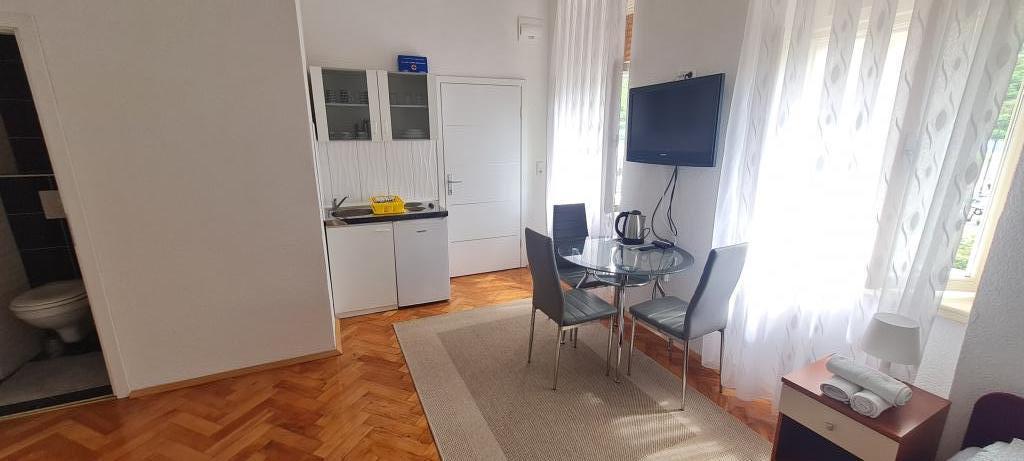 Taxe de sejour est inclus dans le prix.Un parking gratuit est à la disposition des clients à proximité immédiate de l'immeuble, l'utilisation du balcon commun au 1er étage avec vue sur le ruisseau Dubračina, ainsi qu'une terrasse avec vue sur le jardin.