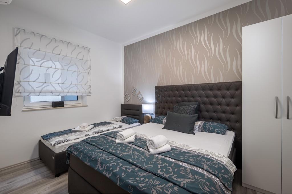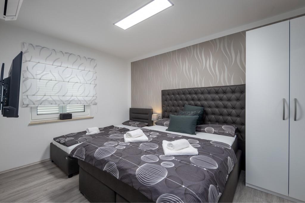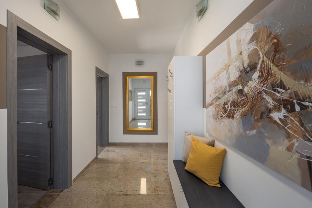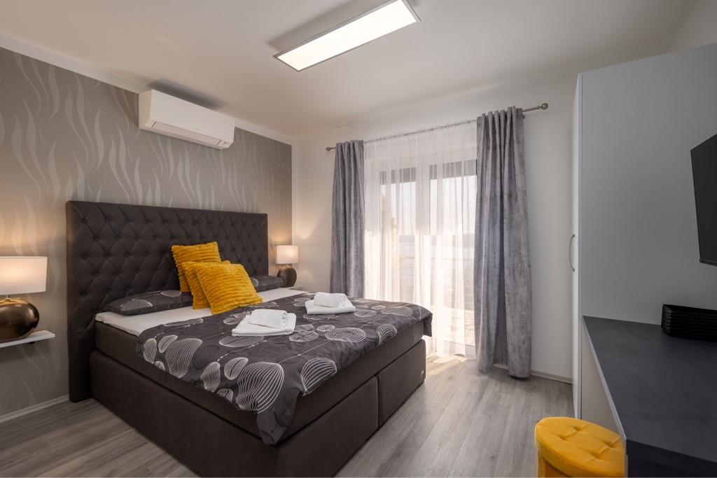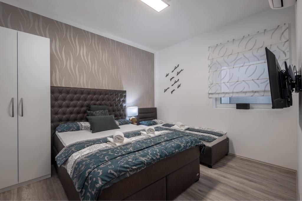 Sentez-vous comme chez vous dans notre complexe de maisons de vacances Villa Fijala avec des appartements et des appartements de vacances. Le bâtiment a été construit en 1986 et entièrement rénové et modernisé en 2021. Aujourd'hui encore, nous prêtons attention à chaque détail et notre priorité est le confort et le bien-être de nos hôtes. La maison est à environ 700 mètres à vol d'oiseau du centre et de la plage et dispose d'un parking gratuit. Le complexe dispose de 2 grands appartements et de 3 appartements, chacun avec entrée séparée. Chaque hôte dispose d'un grand espace extérieur : une grande terrasse, une piscine chauffée (10,5 mx 5,5 m), une grande terrasse ensoleillée avec transats de haute qualité, une cuisine d'été avec diverses grillades, deux douches extérieures et bien plus encore. .! Votre famille Fijala