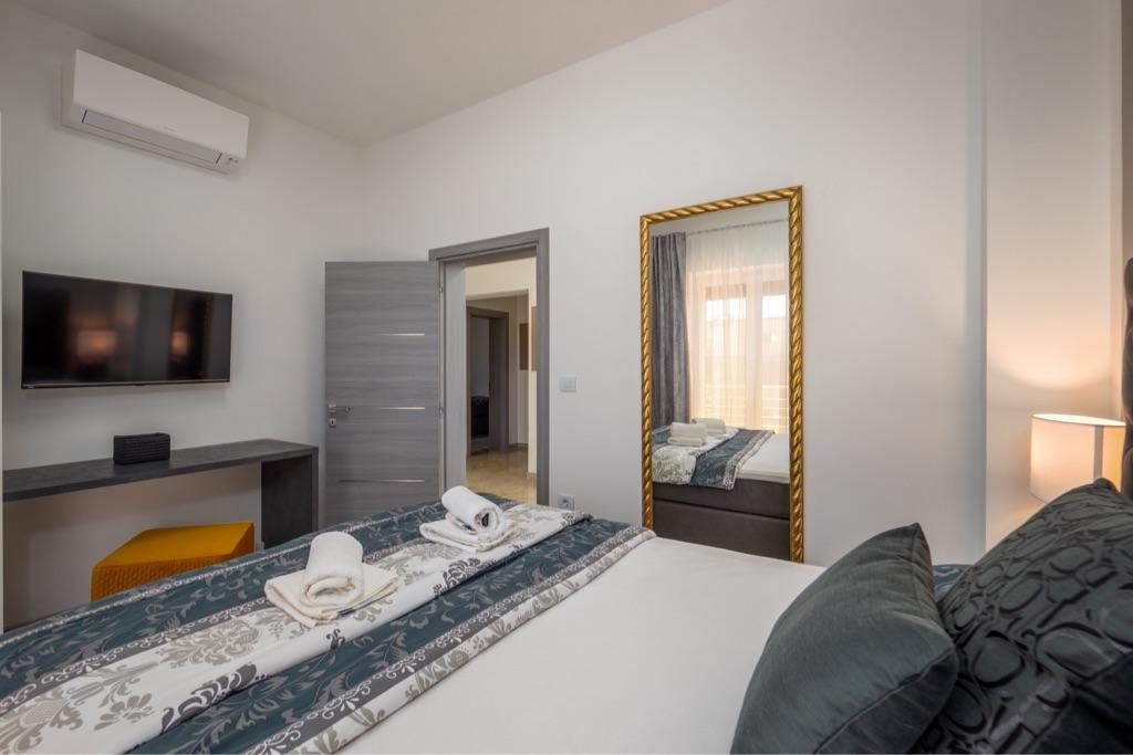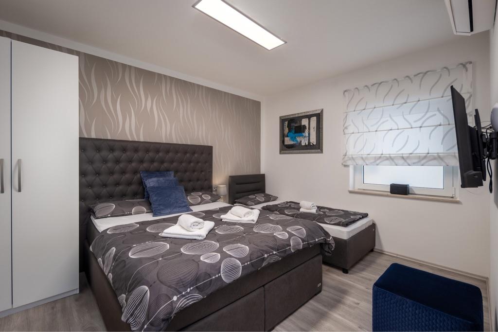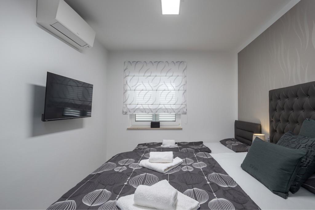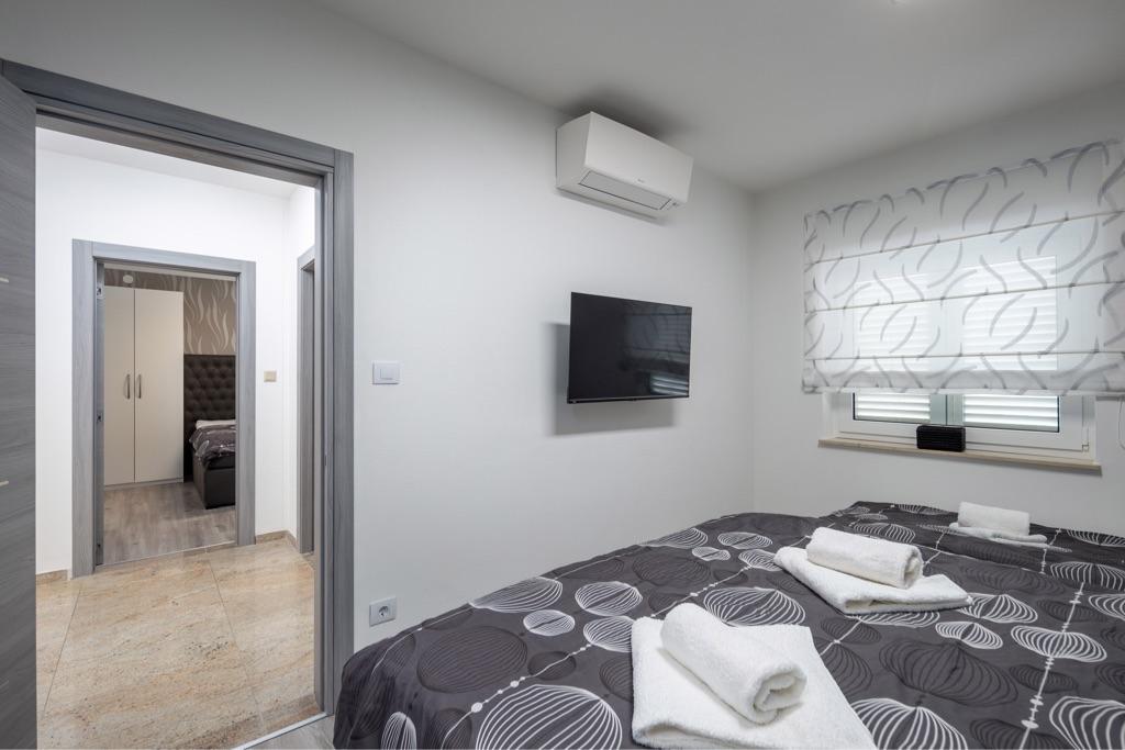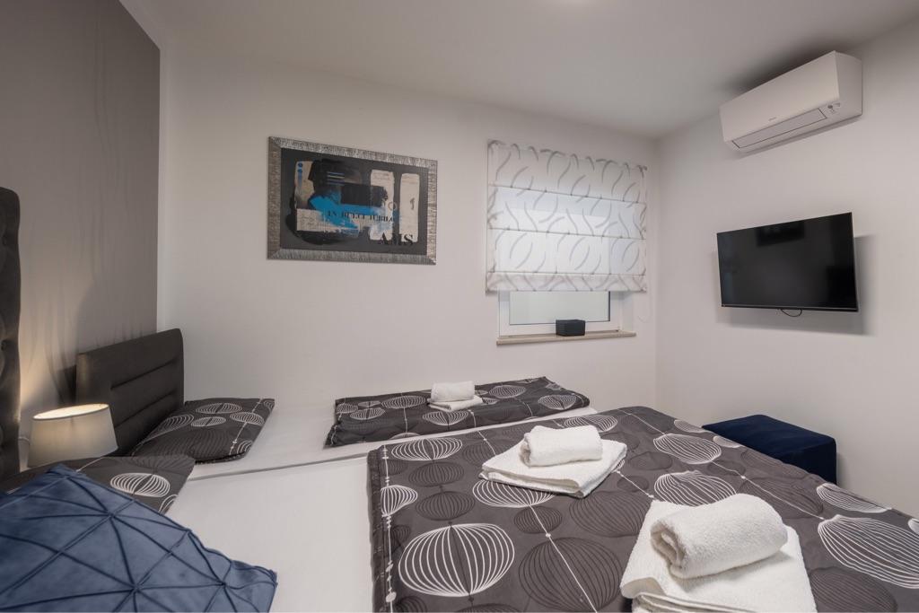 Sentez-vous comme chez vous dans notre complexe de maisons de vacances Villa Fijala avec des appartements et des appartements de vacances. Le bâtiment a été construit en 1986 et entièrement rénové et modernisé en 2021. Aujourd'hui encore, nous prêtons attention à chaque détail et notre priorité est le confort et le bien-être de nos hôtes. La maison est à environ 700 mètres à vol d'oiseau du centre et de la plage et dispose d'un parking gratuit. Le complexe dispose de 2 grands appartements et de 3 appartements, chacun avec entrée séparée. Chaque hôte dispose d'un grand espace extérieur : une grande terrasse, une piscine chauffée (10,5 mx 5,5 m), une grande terrasse ensoleillée avec transats de haute qualité, une cuisine d'été avec diverses grillades, deux douches extérieures et bien plus encore. .! Votre famille Fijala