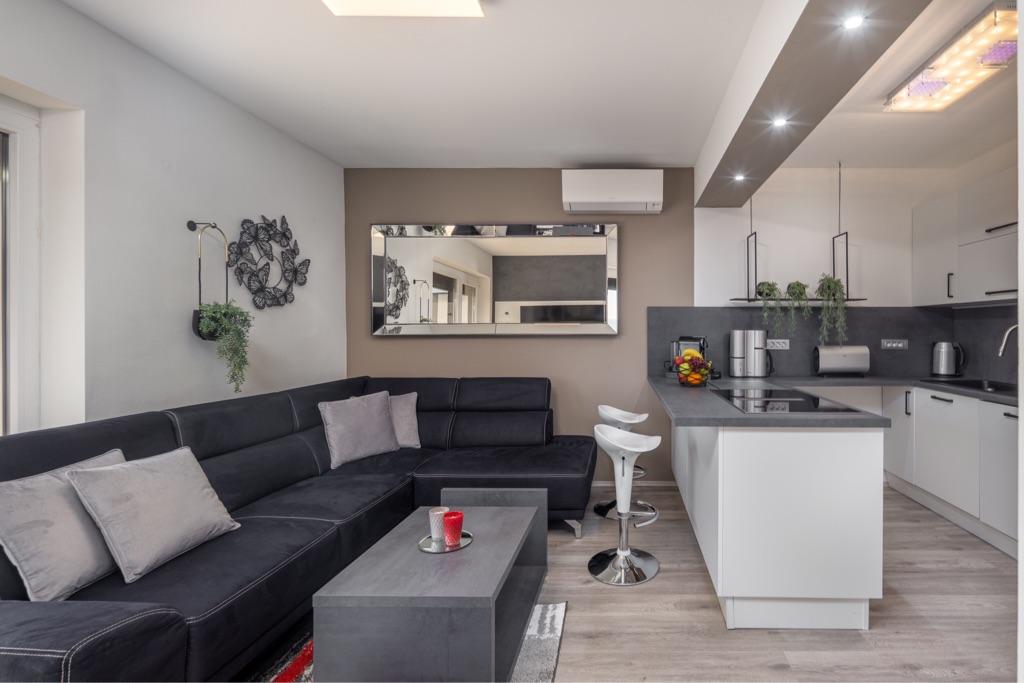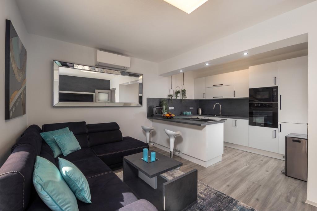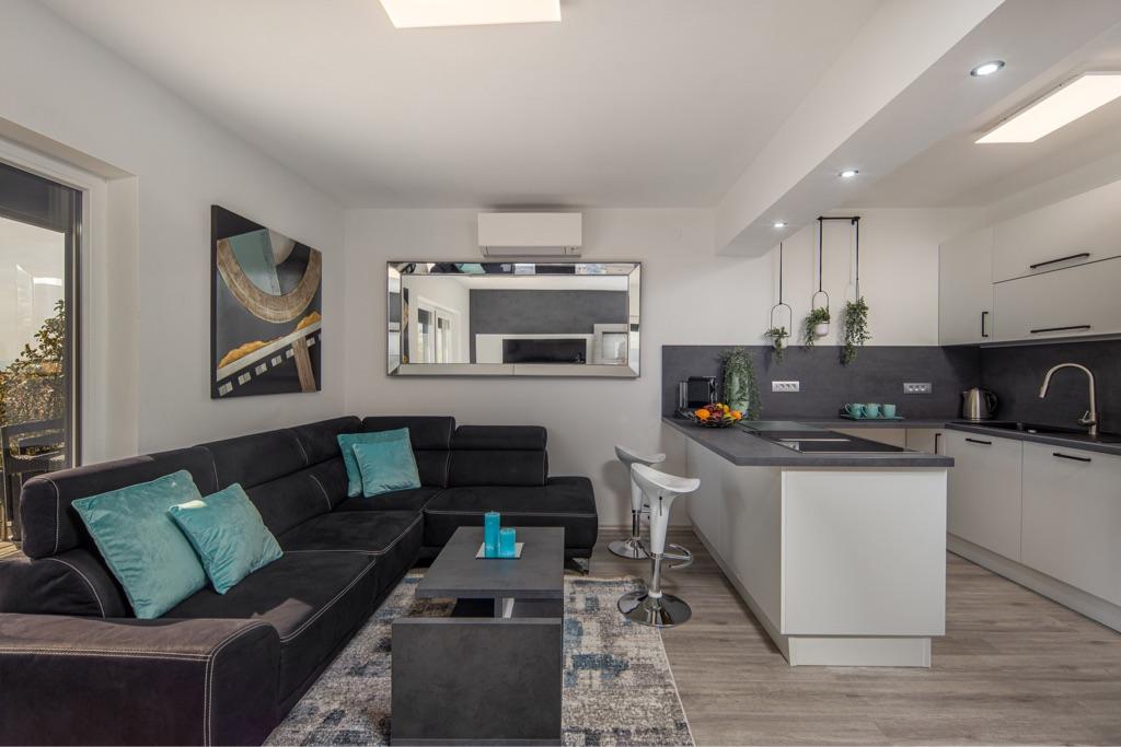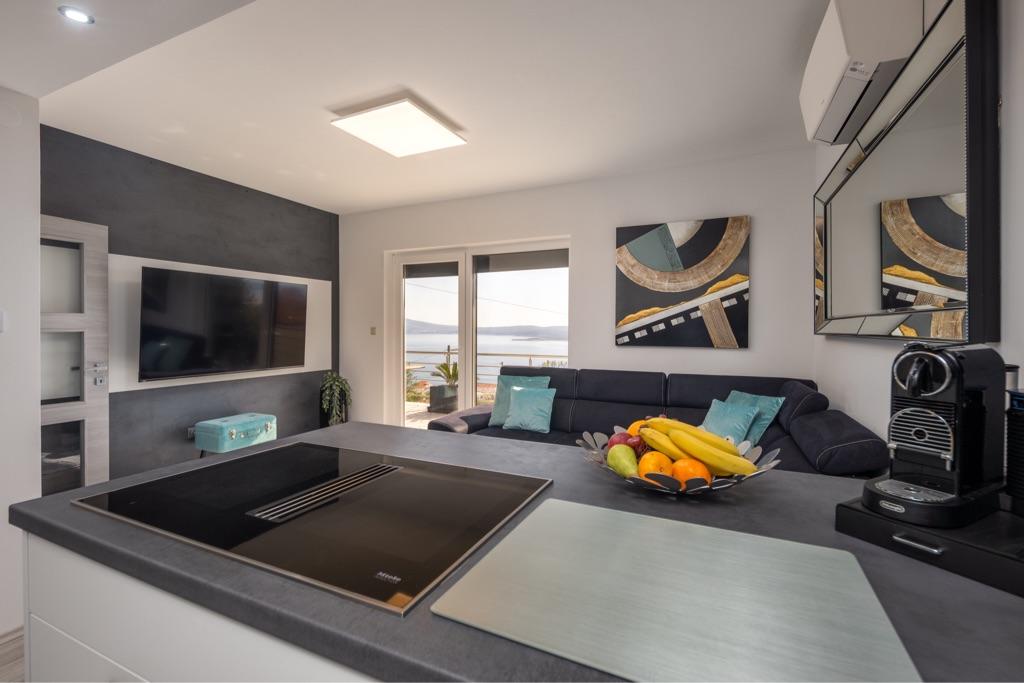 Une belle région avec de superbes vues (piscine ou mer). Il y a aussi une très belle ambiance avec un éclairage pour des soirées agréables. L'appartement était super, tout était très bien entretenu et très bien équipé. Vous ne manquez vraiment de rien, vous pouvez faire des grillades sur place et il y a une cuisine d'été que vous pouvez utiliser. Les hôtes sont très chaleureux et désireux de faire plaisir à leurs invités. Merci pour le bon moment et les bonnes vacances! Nous aimerions revenir.