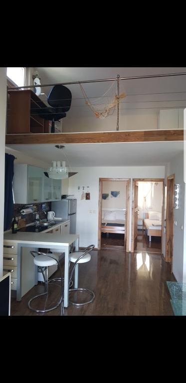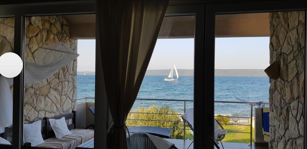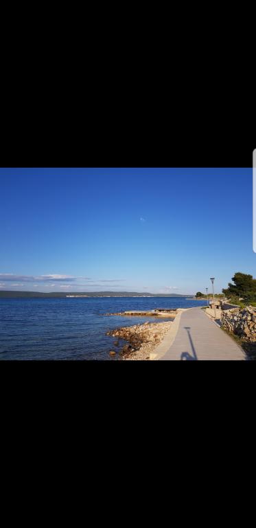 Première rangée de la mer, 2 appartements dans une maison jumelée familiale au rez-de-chaussée et au premier étage sur l'île de Pašman, Dobropoljana. Profitez de vacances en famille directement sur la plage de galets, avec jardin, transats, douche extérieure, barbecue, WIFI, climatisation, parking. Vous pouvez réserver la maison entière ou un appartement séparé au rez-de-chaussée ou à l'étage. Avec sa situation exceptionnelle en bord de mer, cet hébergement de vacances se démarque de la majorité. Depuis le jardin, vous accédez directement à la plage de galets où vous pourrez profiter d'un magnifique lever ou coucher de soleil. La mer est cristalline, propice à la baignade et à la plongée. L'île de Pašman est connue pour ses belles plages de sable et ses nombreux sentiers propices au cyclisme. Un sentier impressionnant vous attend ici jusqu'au plus haut sommet de l'île de Bokolj (274 m), d'où vous pourrez profiter d'une vue sur Zadar et le parc national de Kornati.