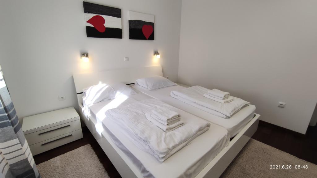 La Villa Vanda est située dans la petite ville de Dobropoljana sur l'île de Pašman. La maison est entourée d'oliviers et de verdure méditerranéenne et est située à seulement 80 m de la mer. Pour vos vacances, nous pouvons vous proposer 3 appartements : - Vanda 1 (max. 4 personnes. ) - Au rez-de-chaussée, avec une grande terrasse, pergola et vue mer - Vanda 4 (max. 4 personnes. ) - Au 2ème étage, un balcon avec une belle vue panoramique sur la mer - Vanda 5 (max. 4 personnes. ) - Au 2ème étage, un balcon avec une belle vue panoramique sur la mer Internet (Wi-Fi) est disponible gratuitement et vous pouvez utiliser un grand barbecue dans une maison séparée. Un parking est disponible devant la maison. Distance : plage de galets 80 m, plage de sable 600 m ; Centre de Dobropoljana 600 m, magasin 600 m, restaurant 500 m
