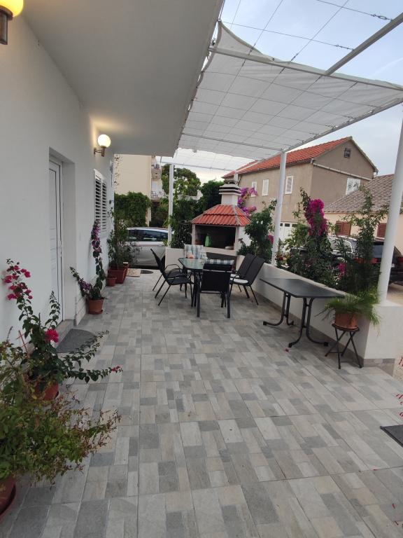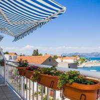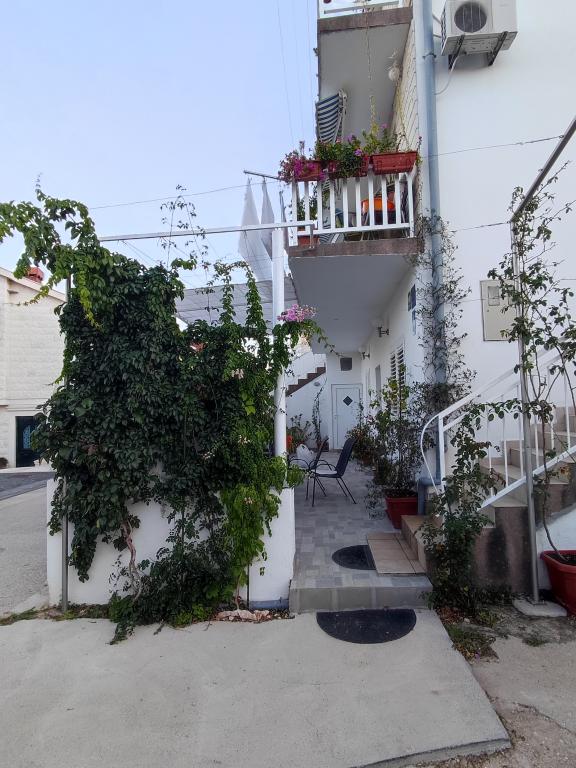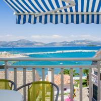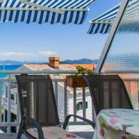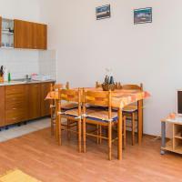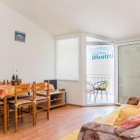 L'appartement se compose d'une chambre (dans laquelle il y a un lit double 160x200 et un lit simple 90x200, armoire), séjour avec cuisine américaine. La cuisine est équipée de tous les ustensiles de cuisine nécessaires, ustensiles de cuisine, couverts, assiettes, bouilloire, cafetière, micro-ondes, cuisinière avec four, réfrigérateur avec congélateur. Le salon dispose d'une table à manger avec des chaises, d'un canapé-lit, de la climatisation, d'une télévision. La salle de bain contient une douche, des toilettes, un meuble avec un miroir dans lequel se trouve un sèche-cheveux. Depuis le salon, il y a une sortie sur le balcon avec une belle vue sur la mer. Il y a une table et des chaises sur le balcon. La maison est au deuxième rang de la mer, à 3 minutes à pied du centre, à 5 minutes à pied de la plage.