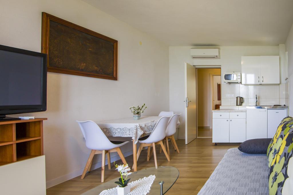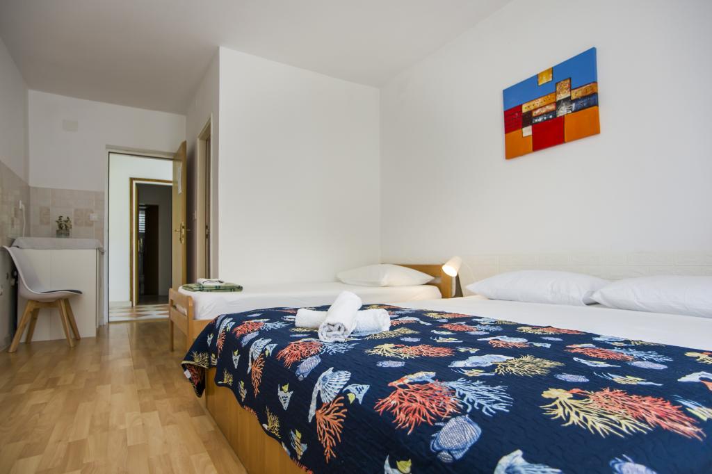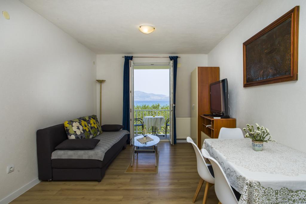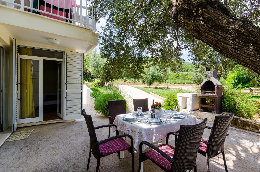 La maison se trouve à 20 mètres d'une plage de galets bordée de sable fin. Située à 500 mètres du village de Drače (à 80 km de Dubrovnik), elle est nichée au cœur d'une vaste oliveraie (10 000 m²). Trois appartements occupent le rez-de-chaussée, tandis qu'un autre se trouve au premier étage. Le Wi-Fi est gratuit et deux barbecues sont à disposition (un grand barbecue commun et un petit barbecue privatif pour l'appartement A1). Un parking est disponible pour tous les véhicules. Chaque appartement est équipé d'un lave-linge et de la climatisation. Le prix de la location comprend trois transats sur la plage.