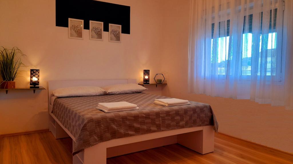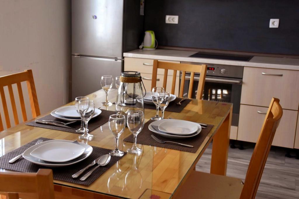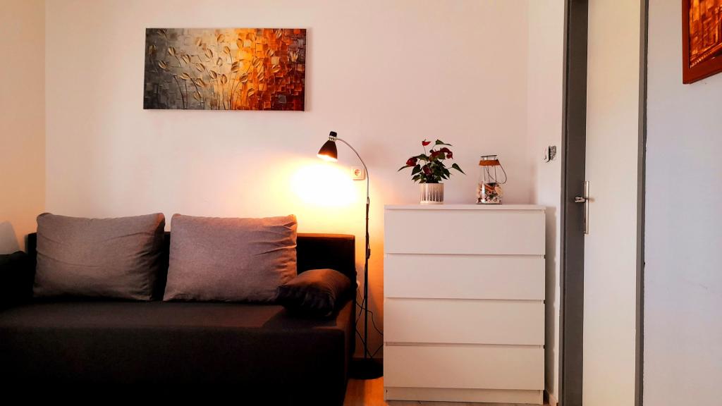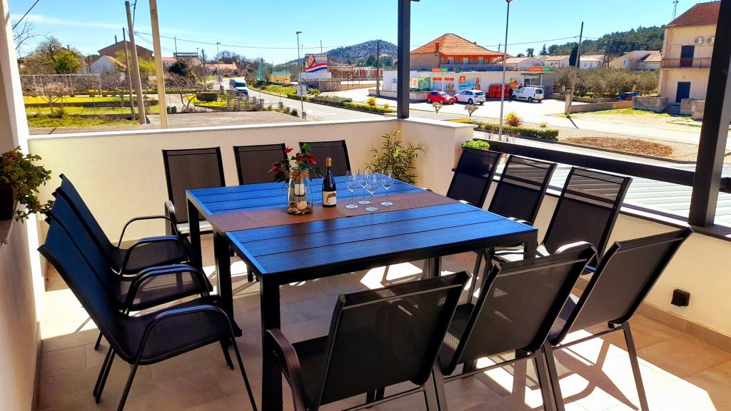 Nous avons séjourné ici avec sept personnes sans aucun problème. Un très grand et bel appartement, mais situé sur une route principale très fréquentée. Sous notre terrasse il y a une épicerie, utilisé très souvent par les automobilistes (assez bruyant). En face se trouve une autre épicerie, où les habitants se retrouvent et ne sont pas tranquilles non plus. Derrière la maison, il y a suffisamment d'espace pour plusieurs véhicules, qui peuvent être garés tranquillement et en toute sécurité. Cependant, je ne pensais pas que c'était bien que sous le balcon il y avait des tas de ferraille et de moulin, pas de belles vues. L'appartement était très bien équipé, nous avons remarqué qu'il n'y avait pas de cafetière (nous avions notre propre Senseo donc ça ne nous a pas dérangé). Le propriétaire était très gentil. Communication sans tracas. Bref résumé si vous cherchez un appartement spacieux et propre, c'est l'endroit où manger, mais si vous voulez vous asseoir dehors au calme le soir, ce n'est pas l'endroit pour vous. Donc seulement 3 étoiles