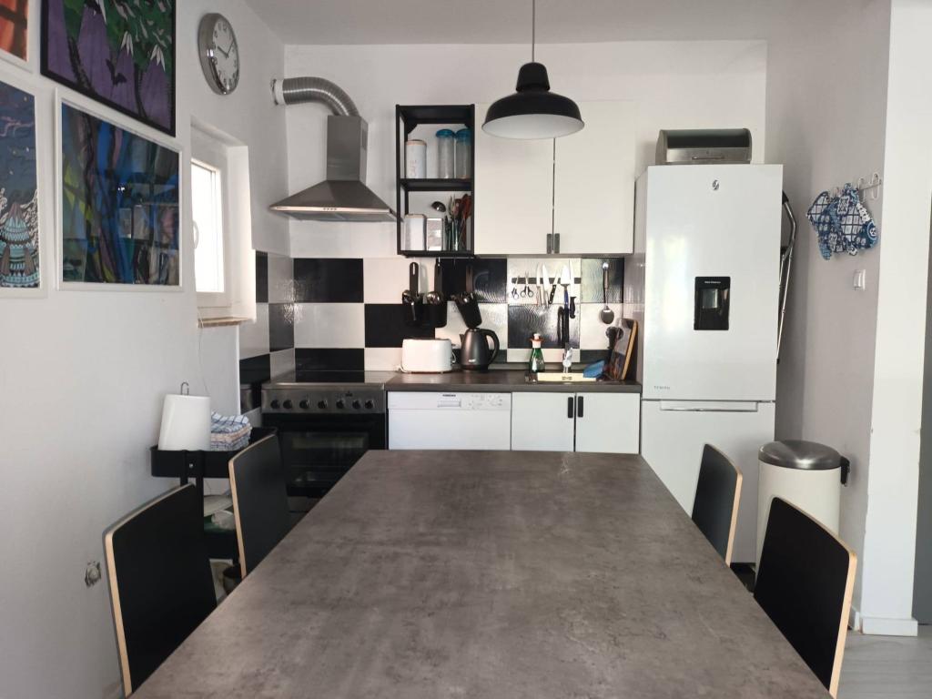 Profitez de notre appartement entièrement rénové à l'ombre de la terrasse avec vue sur la mer limpide ! L'appartement est situé au rez-de-chaussée de la villa et est entouré d'une grande cour ombragée au premier rang de la mer. Passez la chaleur de l'après-midi dans notre jardin parfumé en sirotant des cocktails frais, en attendant le plus beau coucher de soleil ! Chez nous, tout est à portée de main - un verre au bar de plage voisin, un dîner à la pizzeria d'à côté, toutes sortes d'activités sur la plage, lire un livre à l'ombre des vieux pins au bord de la mer, une aire de jeux pour enfants à l'ombre, une promenade éclairée au bord de la mer. Ne vous inquiétez pas pour le stationnement, il est prévu pour vous dans la cour. Comme nous sommes de grands amoureux des animaux, vos animaux de compagnie sont les bienvenus !