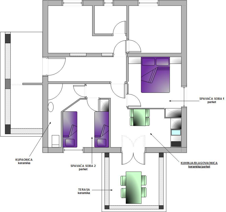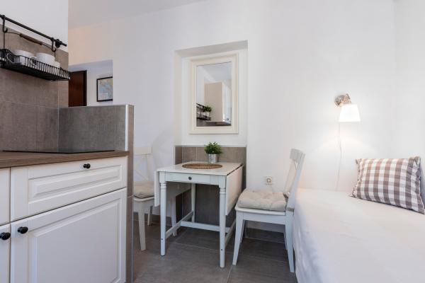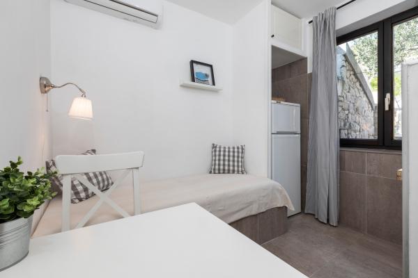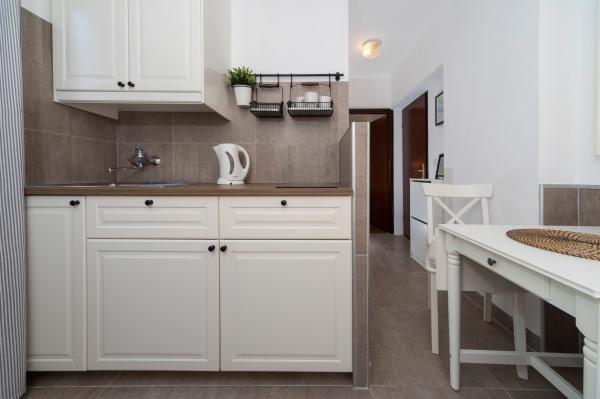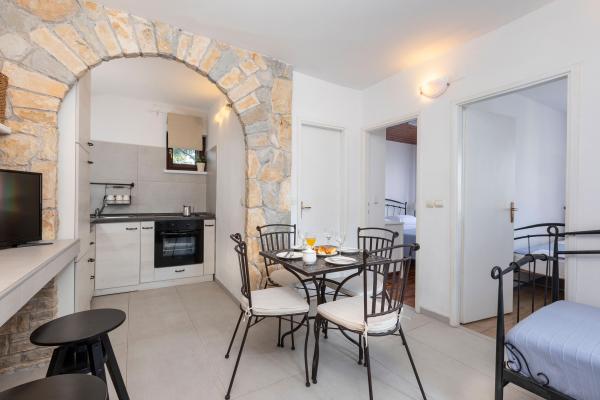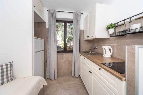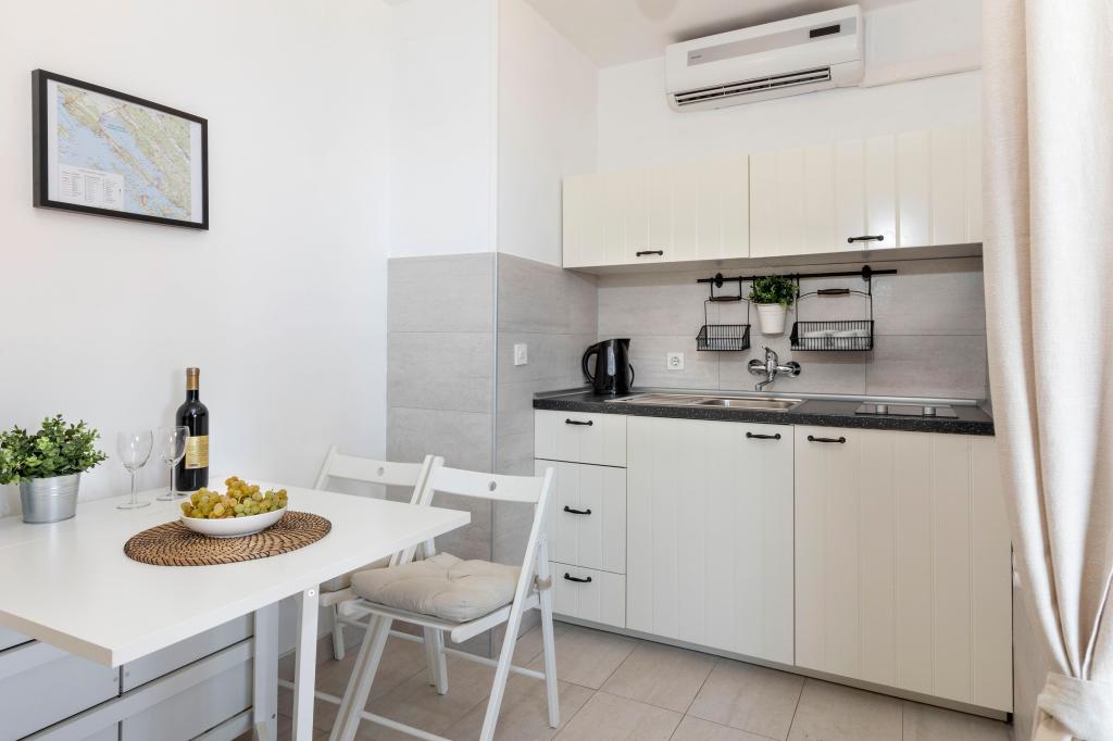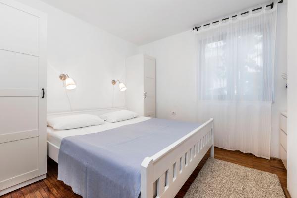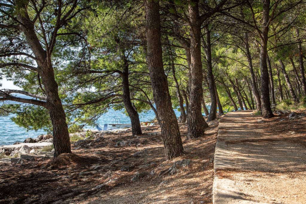Appartements entièrement équipés dans un endroit magnifique avec vue sur la mer dans une maison entourée de verdure. L'établissement se trouve à 150 m de la mer et de la plage, à côté de laquelle se trouve une dense forêt de pins. Une promenade éclairée s'étend à travers la pinède le long de la mer elle-même. Chaque appartement dispose de sa propre cuisine et salle de bains et de 1 à 2 chambres, selon l'appartement. La cuisine dispose de tous les appareils électroménagers et vaisselle nécessaires. L'appartement dispose d'un four ou d'un micro-ondes (selon l'appartement). Les chambres disposent de lits confortables, le linge de lit et les serviettes sont fournis dans la salle de bain. L'appartement A4 dispose d'une terrasse spacieuse avec une belle vue sur la mer et la terrasse fait partie intégrante de l'appartement. L'appartement A4+1 dispose d'une terrasse privée couverte à côté de l'appartement, entourée de verdure. Le studio dispose de sa propre terrasse privée à côté de l'appartement, séparée du passage, avec une belle vue sur la mer. Le plan de chaque logement est joint aux photos, vous pourrez ainsi voir la taille et la disposition des pièces. . Chaque appartement dispose de sa propre place de parking.