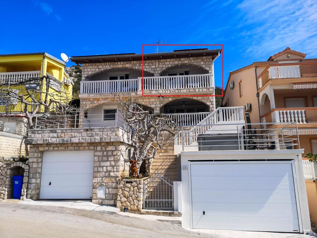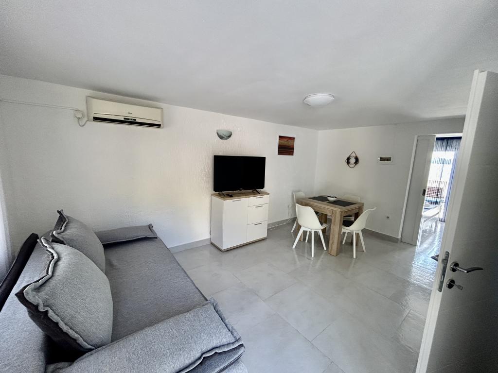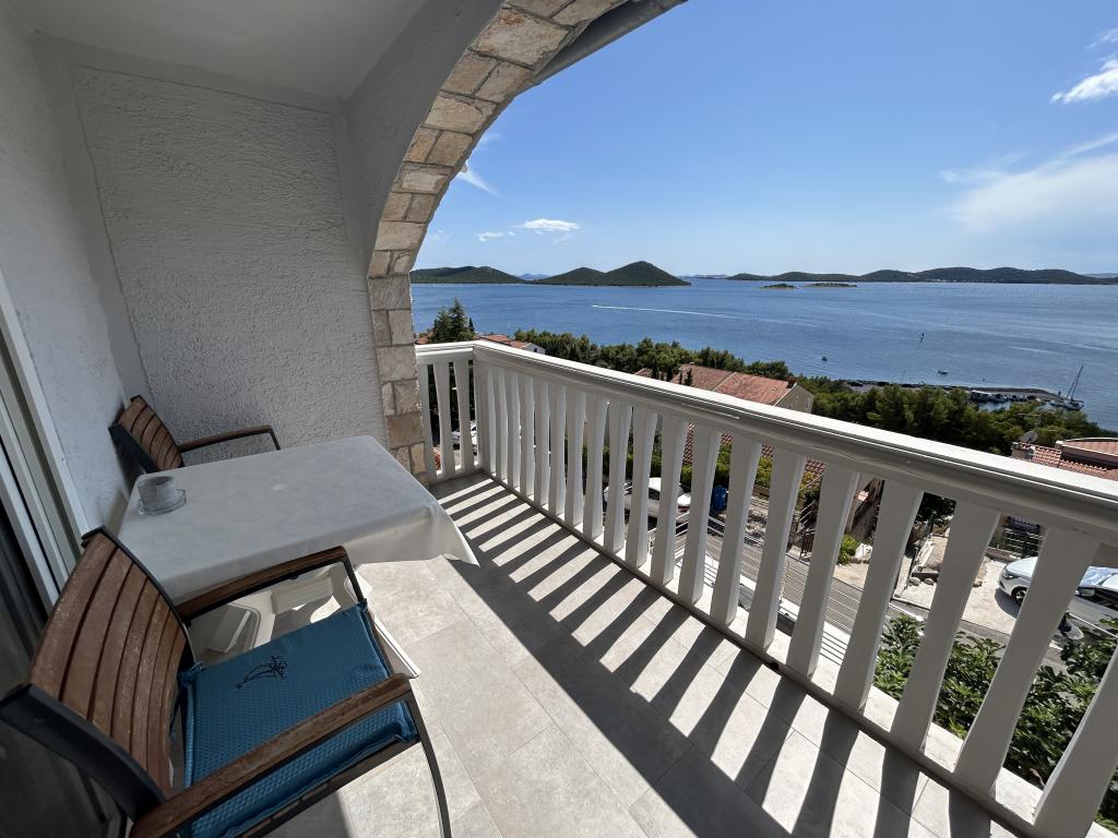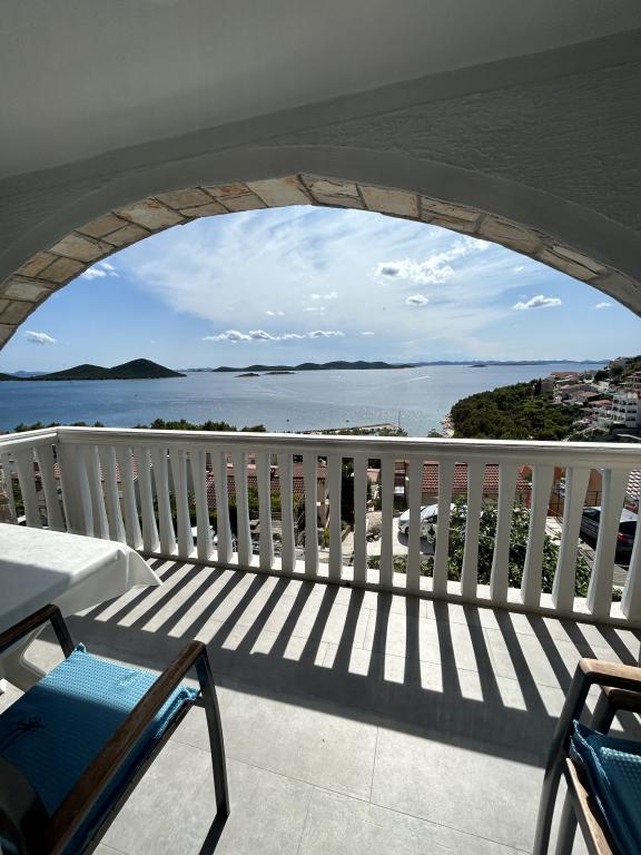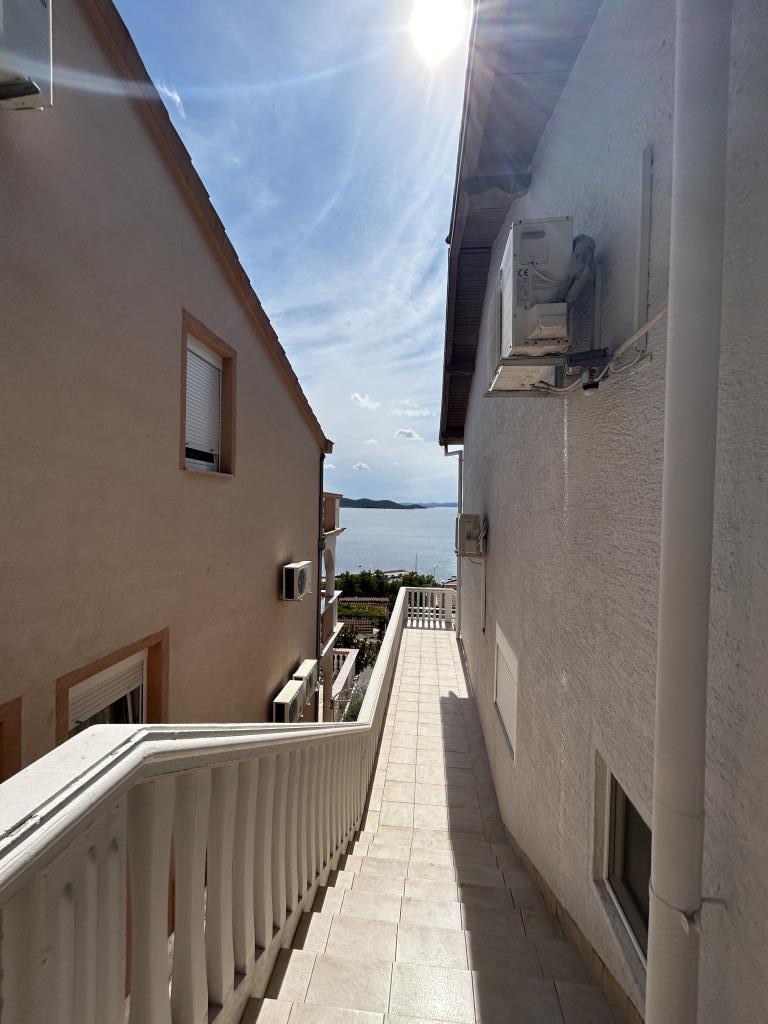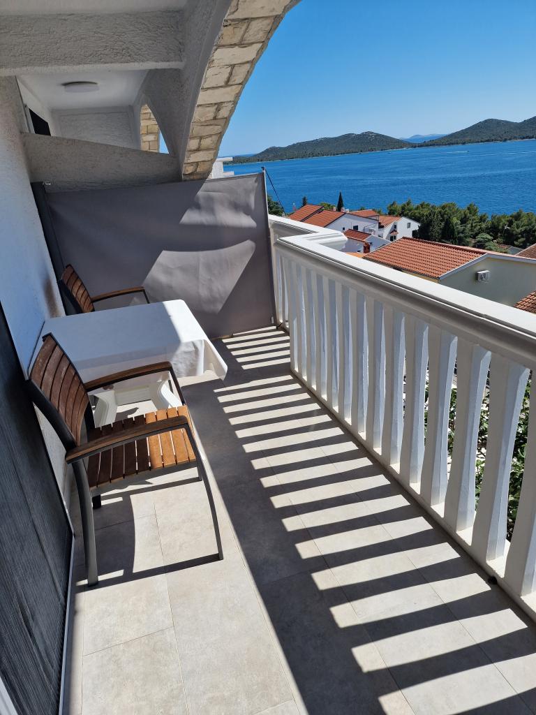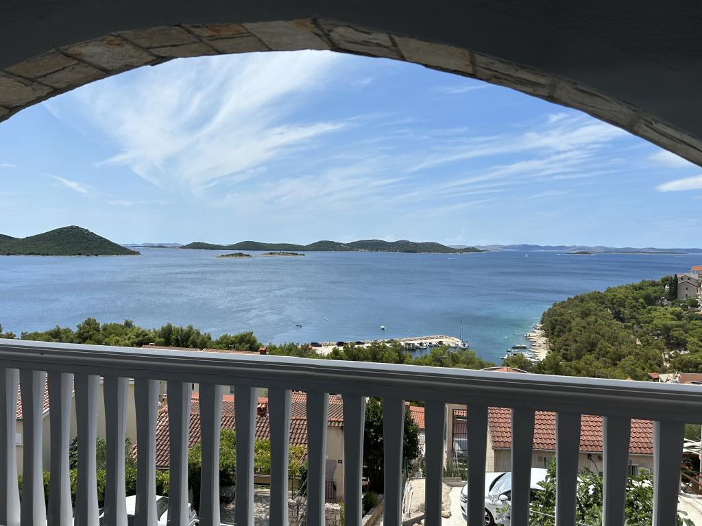 Appartement avec une belle vue sur la mer et les îles Kornati. Derrière l'appartement il y a une terrasse avec un jardin paysager et un barbecue commun. Il se trouve à 3 minutes à pied de la plage. Le long de la côte, il y a une forêt de pins dense avec une plage de pierres et de galets (pour les enfants). À côté de la plage, il y a aussi un bar de plage et un restaurant-pizzeria et une boulangerie. Le magasin est à seulement 300 mètres, soit 5 minutes à pied. Le parc naturel du lac Vrana est situé à 1500 mètres.