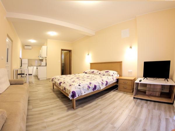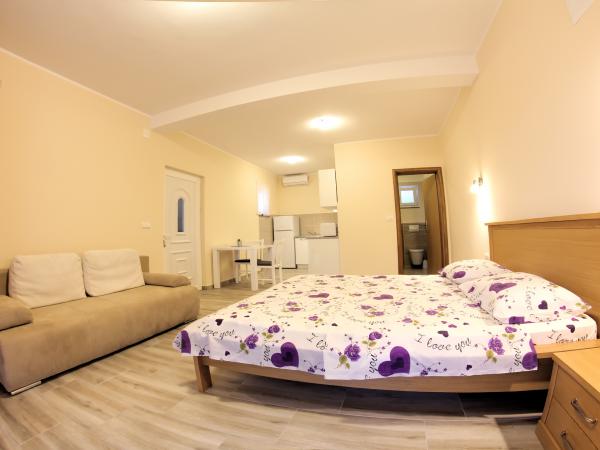 Mara et Damir sont des hôtes sympathiques et serviables qui vous accueillent avec le sourire. Quels que soient vos besoins, ils sont disponibles 24h/24. Un endroit paisible et tranquille pour se détendre. Les appartements sont confortables et propres. Nous y retournons chaque année avec plaisir. Plages à proximité, rochers pour l'intimité, sable fin pour les enfants… à vous de choisir où vous voulez. Mer propre. Points de vue magnifiques. Arriver aux appartements de Mara et Damir, c'est comme rentrer à la maison pour nous. Merci pour tout !