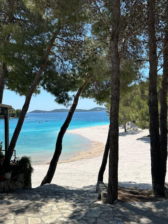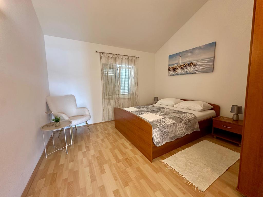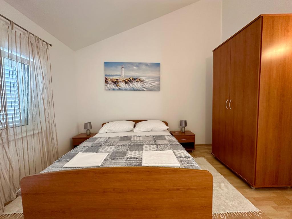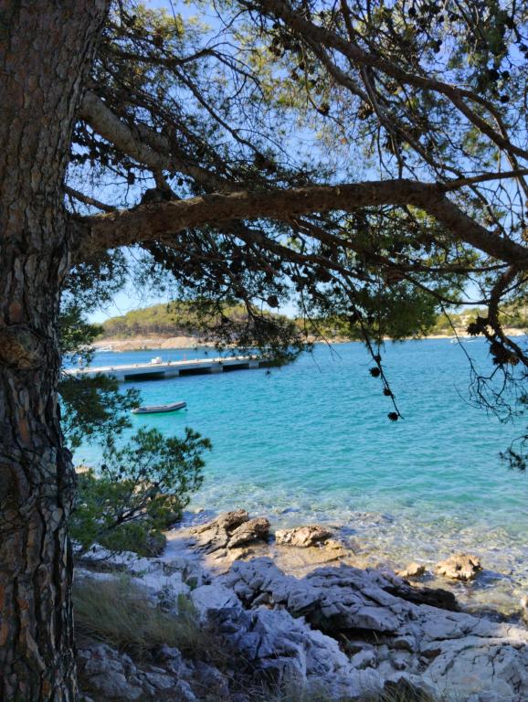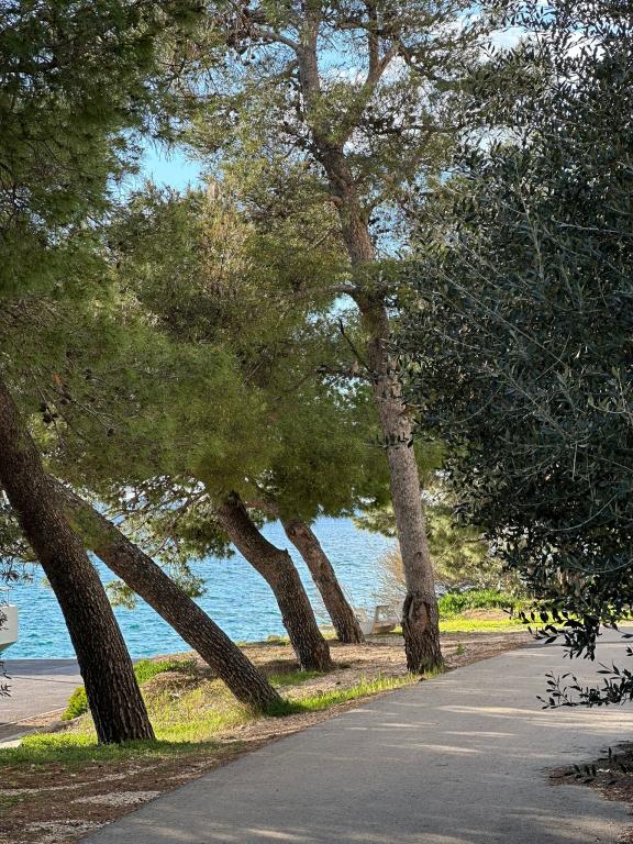 Calme et intimité – hébergement réservé aux adultes (2 personnes maximum). Notre hébergement n'est pas adapté aux enfants, en raison de la plage sauvage à proximité et des équipements de l'appartement. Veuillez adresser toutes vos demandes exclusivement via le formulaire de contact. La liste des prix pour la saison 2026 est à jour. Les appartements « Mustel » sont situés à Drage, à 10 km de Biograd, en première ligne de mer, à côté de la nouvelle marina de Drage. La plage la plus proche est naturelle, nichée dans une pinède (voir photos) et à quelques pas de l'hébergement, en direction de Pakoštane. Une promenade en forêt relie notre établissement à Pakoštane, offrant calme et intimité à l'ombre des pins. La ville de Drage propose également d'autres plages, et la première plage publique de galets (Plaža Porat) se trouve à 800 m, avec un grand parking, un restaurant et un bar. Tous les appartements sont équipés d'une chambre séparée, d'une cuisine, d'un salon, d'une salle de bains, d'un balcon/terrasse, de la climatisation, du Wi-Fi, du linge de lit et des serviettes. Le parking se trouve dans la cour.