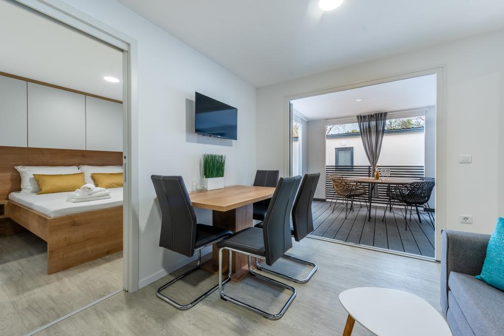 En savoir plus Unités d'hébergementLa réservation d'un appartement pour la durée souhaitée est considérée comme confirmée dès le versement d'un acompte de 25% du montant total de l'hébergement. A l'arrivée (premier jour), l'appartement peut être utilisé à partir de 15h00, et au départ (dernier jour), l'appartement peut être utilisé jusqu'à 10h00. Pour toutes autres informations, n'hésitez pas à nous contacter.