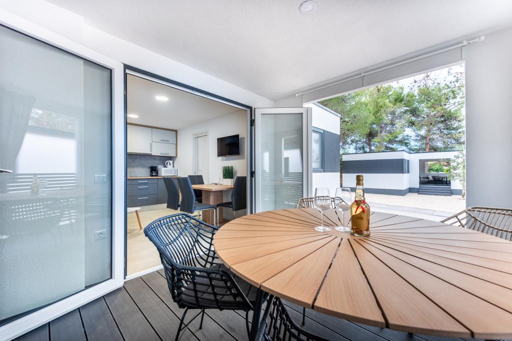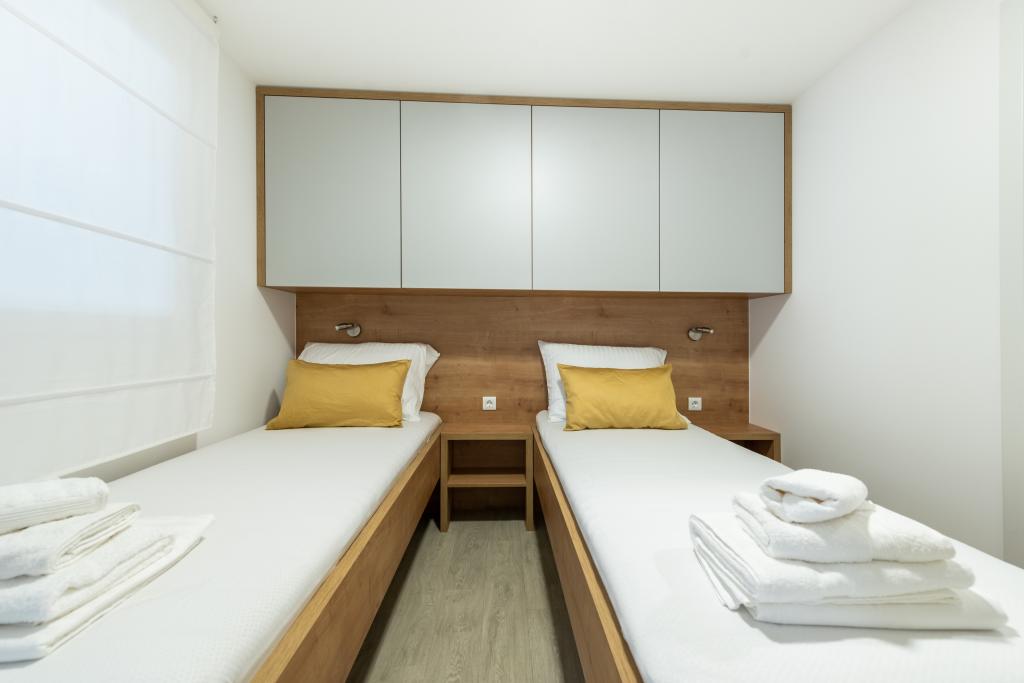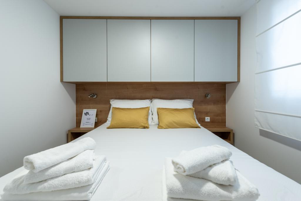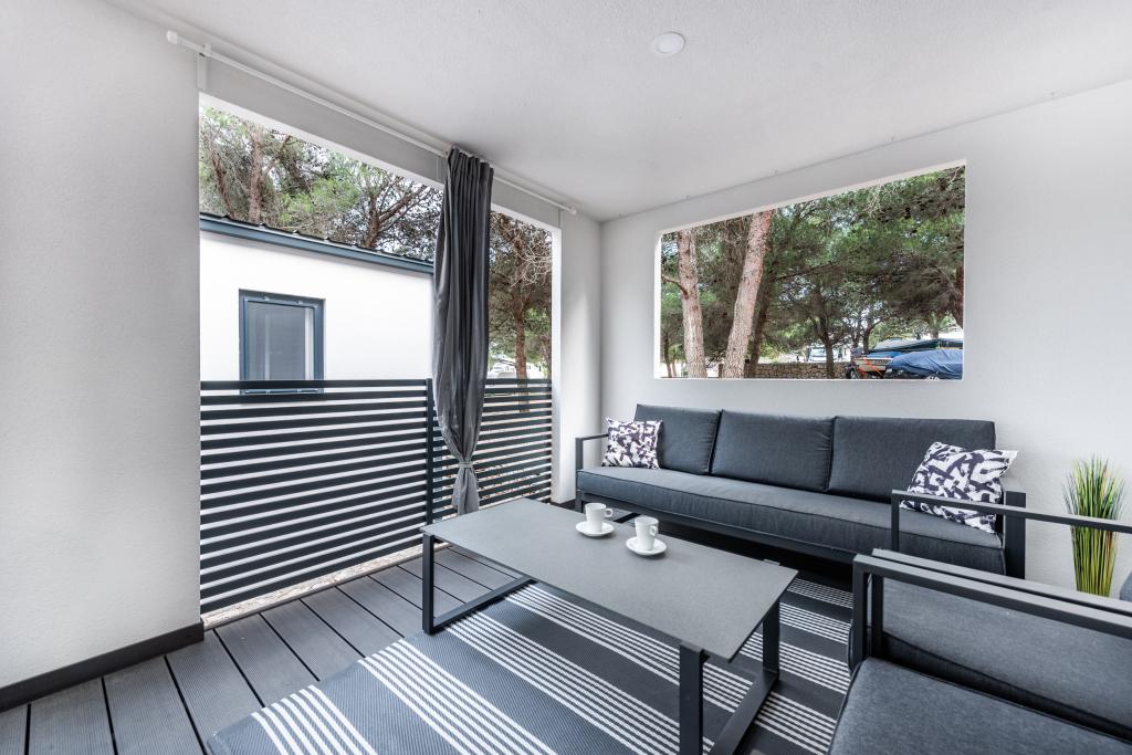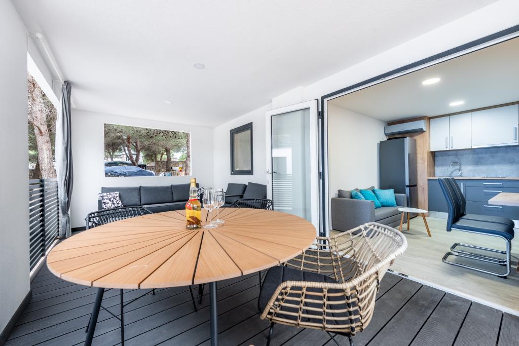 Un mobil-home luxueux, équipé de façon moderne avec une belle terrasse qui saura satisfaire tous les goûts. Le mobil-home est situé dans le camping "Oaza mira" dans un emplacement privilégié dans une pinède ombragée, à seulement 50 m de la belle plage. A proximité immédiate se trouvent une grande piscine et de nombreuses installations sportives (court de tennis, terrain de pétanque, aire de jeux pour enfants). Le camp dispose d'un restaurant, d'un supermarché et d'un grand bloc sanitaire avec buanderie. Les maisons disposent chacune de deux chambres, une chambre avec un lit double et une chambre avec deux lits simples. Dans le salon, le canapé d'angle peut servir de couchage d'appoint pour deux personnes supplémentaires. La maison dispose d'un grand séjour, d'une cuisine avec vaisselle, cuisinière et réfrigérateur, et d'une/deux salles de bain avec douche, lavabo et WC. Le mobil home dispose d'un jardin avec terrasse et auvent.