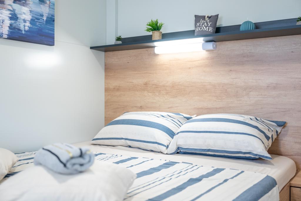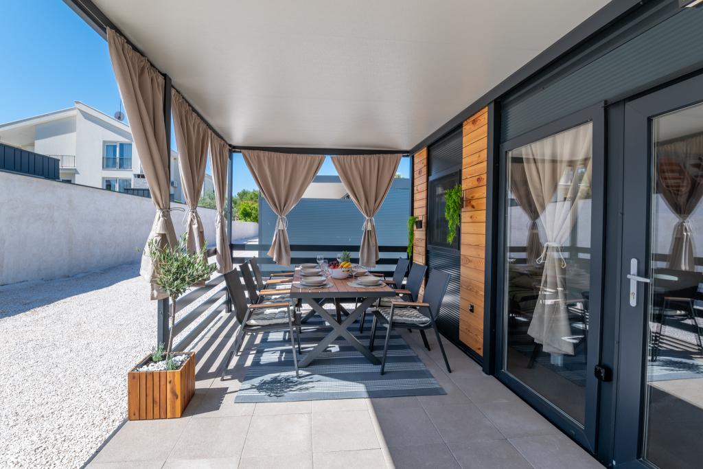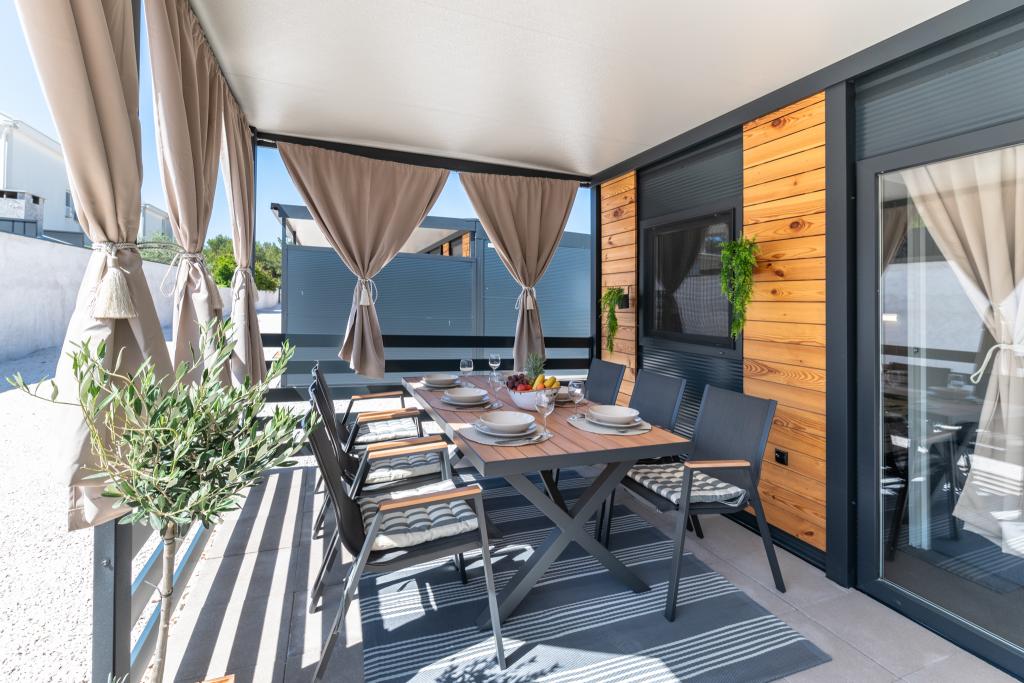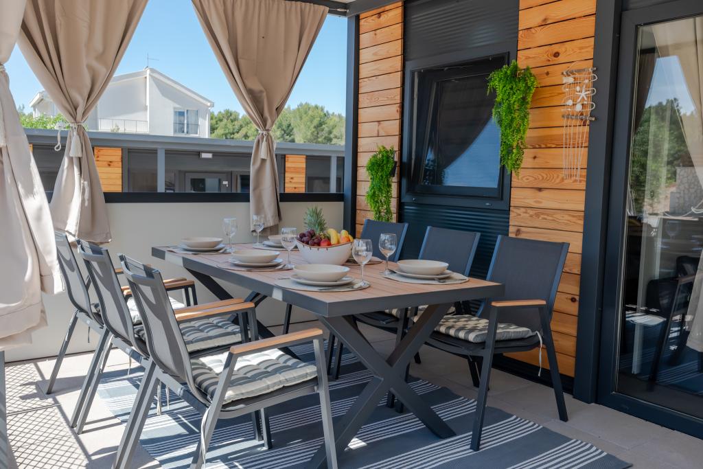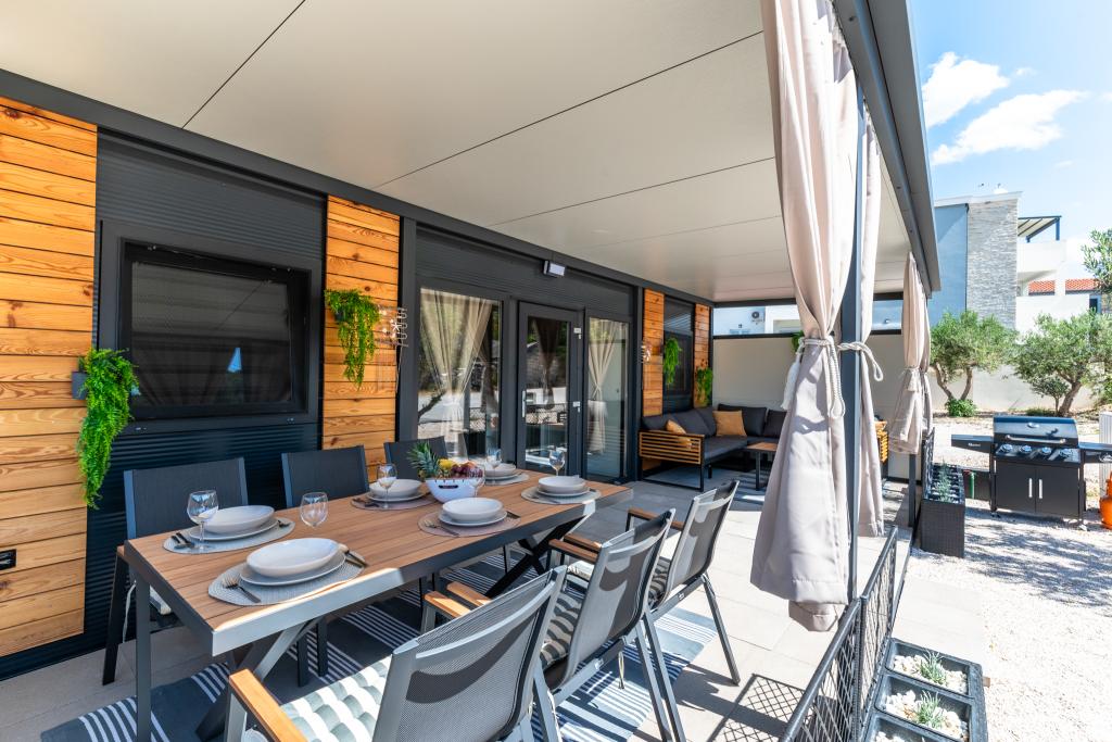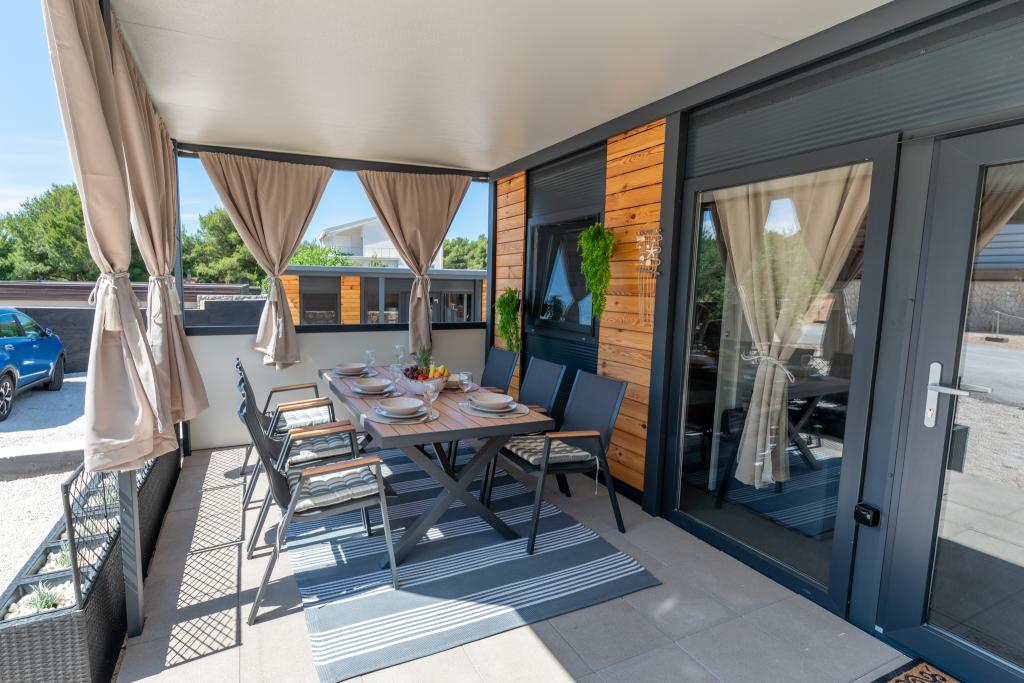 Découvrez des vacances balnéaires idéales dans nos charmants mobil-homes, situés à seulement 70 mètres de la plage de Porat, dans le paisible village de Drage ! Deux mobil-homes sont disponibles, pouvant accueillir chacun jusqu'à 4 adultes et 1 enfant. Ils disposent de deux chambres : l'une avec un lit double de 160 x 200 cm, l'autre avec un lit double de 140 x 200 cm. Un canapé-lit permet également d'accueillir un enfant jusqu'à 5 ans. Chaque chambre est équipée de lits et de linge de lit confortables pour vous garantir un repos bien mérité. Le salon, meublé avec goût et équipé d'une télévision, est parfait pour se détendre en soirée. La cuisine est entièrement équipée avec tous les appareils nécessaires : réfrigérateur, plaques de cuisson, cafetière, bouilloire et micro-ondes. Profitez de votre café du matin ou de votre verre du soir sur la spacieuse terrasse de 24 m² ! Pour toute demande d'information, veuillez utiliser le formulaire de contact.