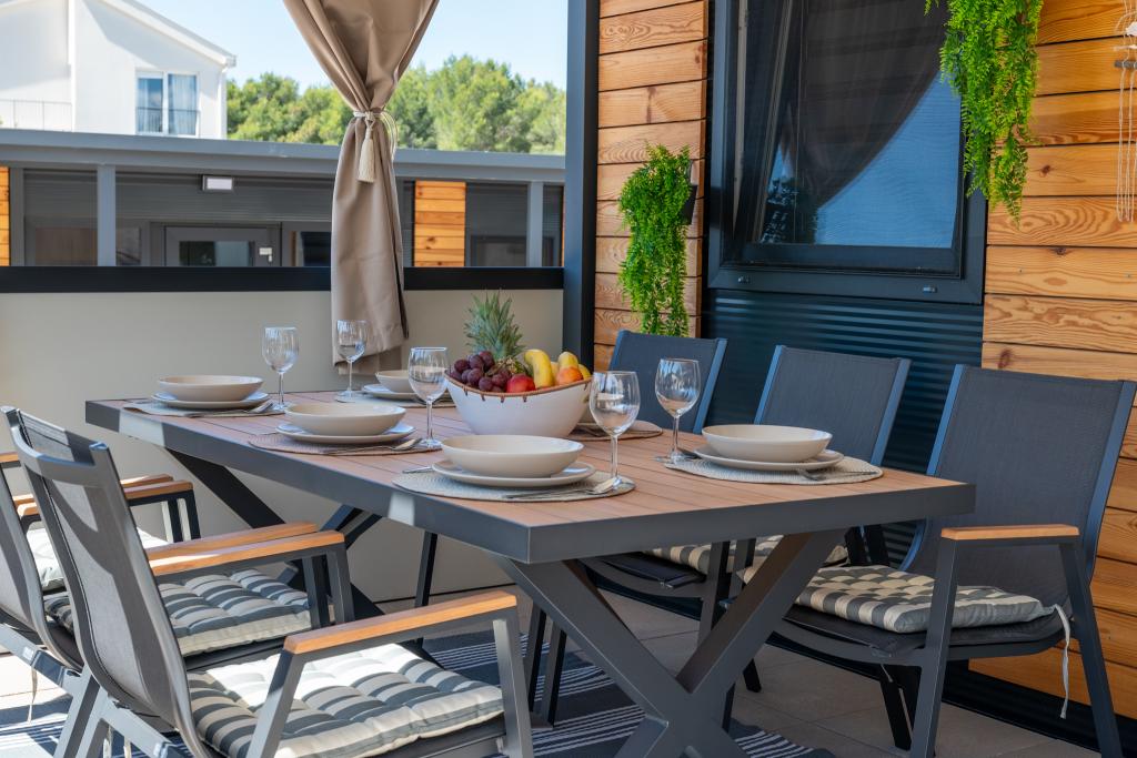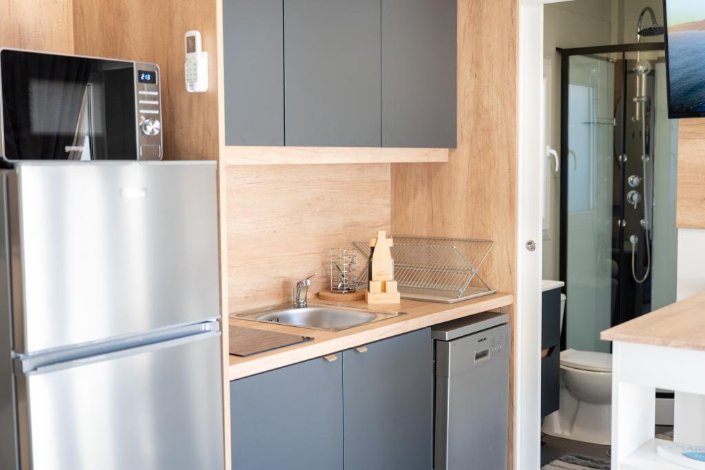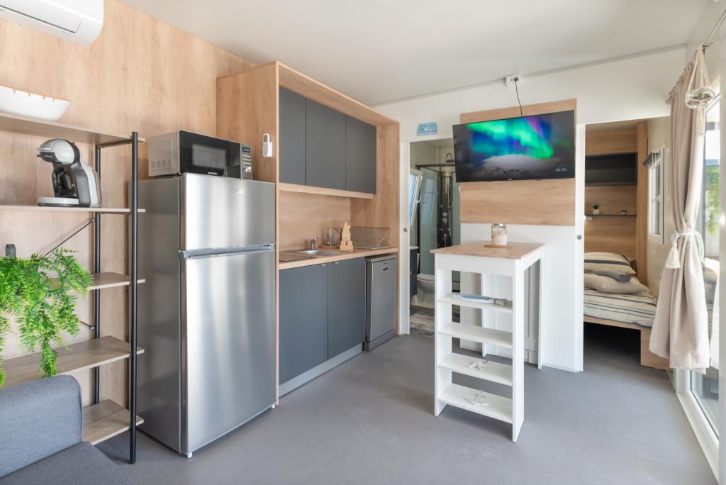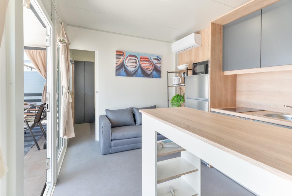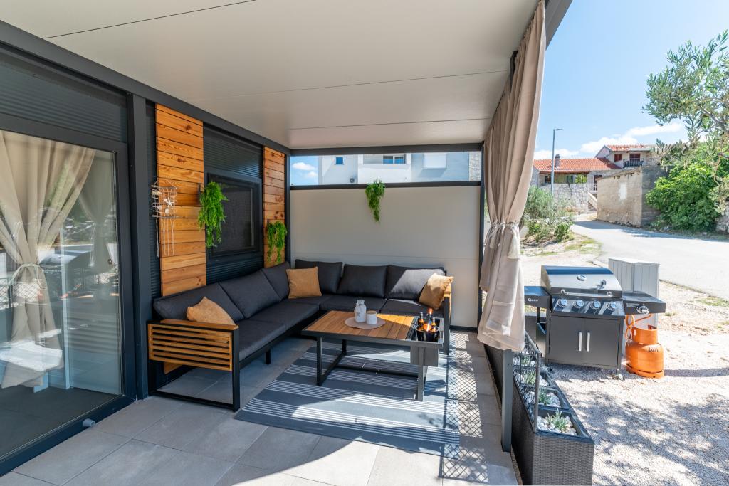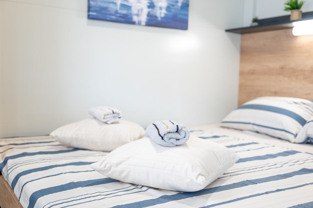 Découvrez des vacances balnéaires idéales dans nos charmants mobil-homes, situés à seulement 70 mètres de la plage de Porat, dans le paisible village de Drage ! Deux mobil-homes sont disponibles, pouvant accueillir chacun jusqu'à 4 adultes et 1 enfant. Ils disposent de deux chambres : l'une avec un lit double de 160 x 200 cm, l'autre avec un lit double de 140 x 200 cm. Un canapé-lit permet également d'accueillir un enfant jusqu'à 5 ans. Chaque chambre est équipée de lits et de linge de lit confortables pour vous garantir un repos bien mérité. Le salon, meublé avec goût et équipé d'une télévision, est parfait pour se détendre en soirée. La cuisine est entièrement équipée avec tous les appareils nécessaires : réfrigérateur, plaques de cuisson, cafetière, bouilloire et micro-ondes. Profitez de votre café du matin ou de votre verre du soir sur la spacieuse terrasse de 24 m² ! Pour toute demande d'information, veuillez utiliser le formulaire de contact.