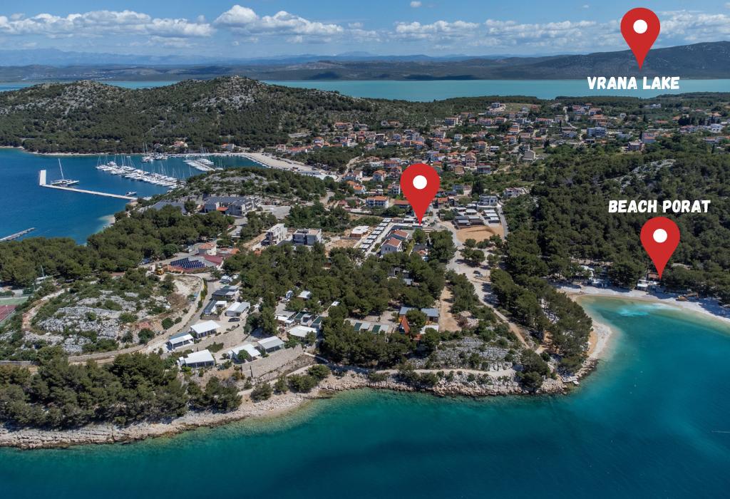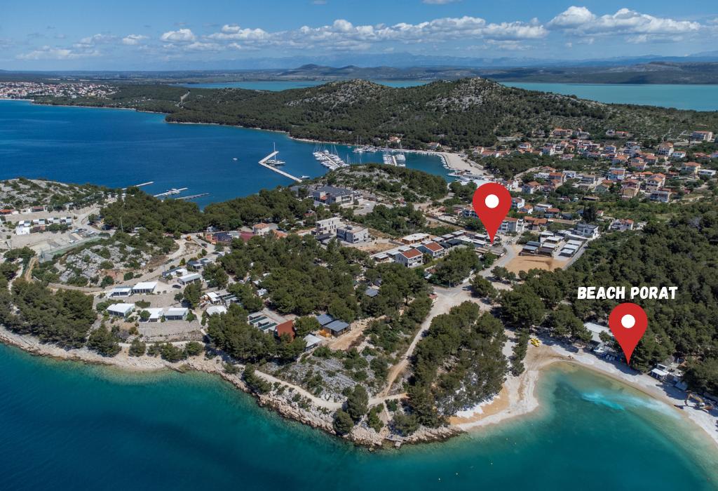 La plage de Porat, réputée pour son eau cristalline et son rivage de galets, est idéale pour bronzer, nager et pratiquer divers sports nautiques. De nombreux restaurants, cafés et boutiques se trouvent à proximité immédiate, pour un séjour encore plus agréable. Nous vous proposons tout ce dont vous avez besoin pour vos vacances : transferts aéroport, location de voiture et de bateau, excursions (croisière aux îles Kornati et Telašćica, balades en quad sur le lac de Vrana, excursion d'une demi-journée en bateau pour observer les dauphins, etc. – notre liste de prix est disponible sur demande). Pour toute demande, merci de nous contacter exclusivement via le formulaire de contact ; nous vous répondrons rapidement avec toutes les informations nécessaires.