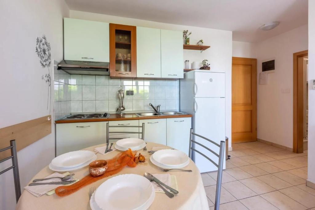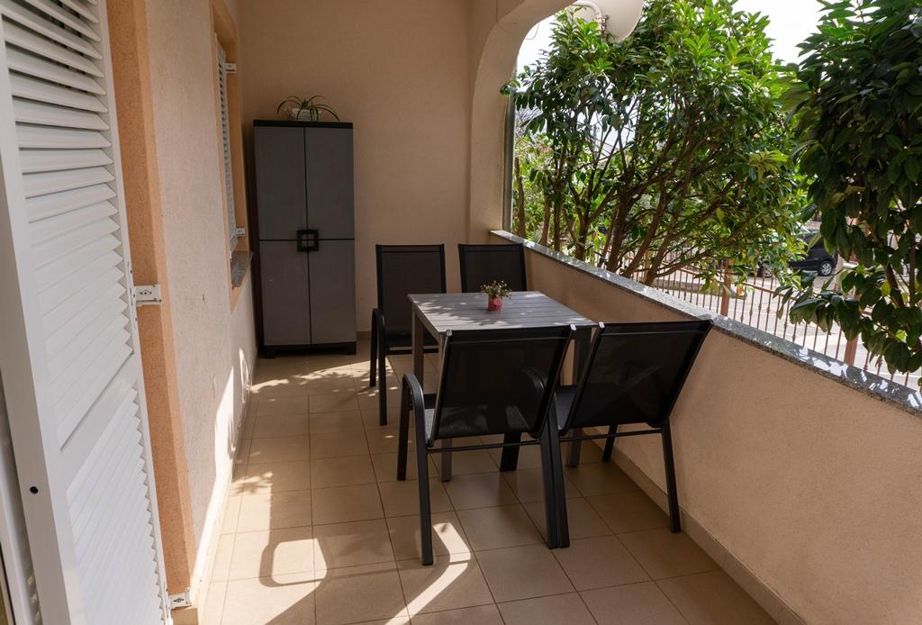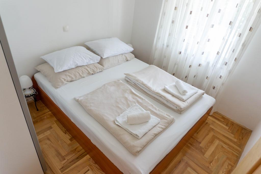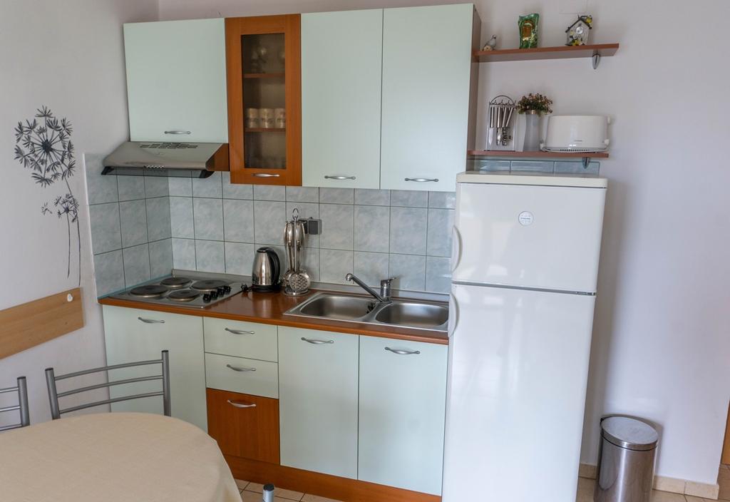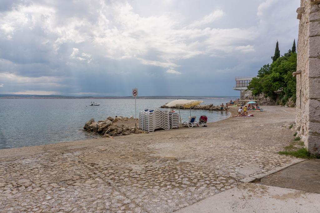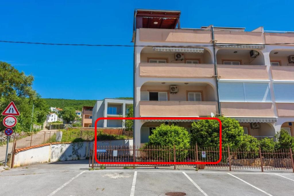 Appartement Lovor (31m²), RDC d'un immeuble résidentiel, calme à Dramalj. 450m de la mer, proche Thalassotherapia, parc Adrénaline et sentiers. Idéal pour 2-3 adultes ou famille. Comprend chambre (160x200), salle de bain, terrasse et cuisine équipée (frigo, cuisinière, micro-ondes, bouilloire, machine à café, grille-pain, vaisselle) avec séjour (TV, canapé-lit 75x200/150x200). Clim, Wi-Fi gratuit et parking privé.