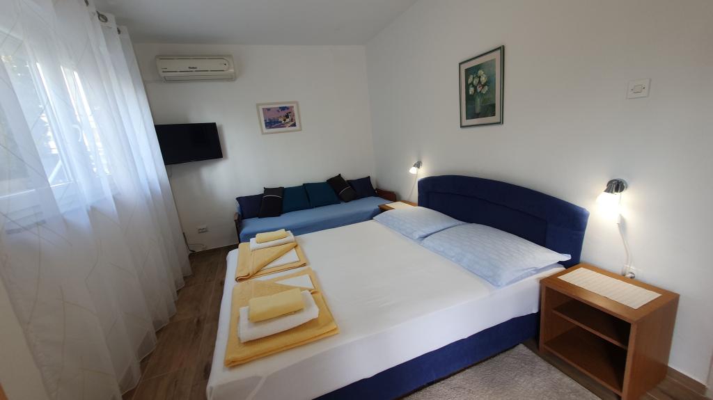 La maison familiale DANICA dans le village de Dramalj comprend 3 appartements séparés à louer (chacun sur un étage), avec une cour, un jardin et un parking privé à côté de la maison. Il est situé dans une rue calme, à 5 min. marcher jusqu'à la mer. La ville la plus proche est Crikvenica, à 3 km. Le propriétaire/hôte réside dans la partie non commerciale de la maison au rez-de-chaussée. La location est notre entreprise familiale depuis 1969 et, à ce jour, l'établissement a accueilli des milliers de clients satisfaits qui sont heureux de revenir. Aujourd'hui, vos hôtes sont le couple marié Zlatka et Vladimir Pavković. Nous essaierons de faire en sorte que vous vous sentiez à l'aise avec nous. Nous garantissons une confidentialité totale à nos hôtes. L'appartement A1 au rez-de-chaussée (2+1) dispose d'une terrasse couverte avec vue sur la mer et le jardin méditerranéen. L'appartement A2 (3+2) au 1er étage dispose de 2 terrasses et d'un balcon avec vue sur la mer. L'appartement A3 (3+2) au 2ème étage dispose d'une grande terrasse donnant sur l'île de Krk, de Rijeka à l'ouest jusqu'à la lointaine montagne Velebit au sud-est. Les appartements sont climatisés. La climatisation est incluse dans le prix.