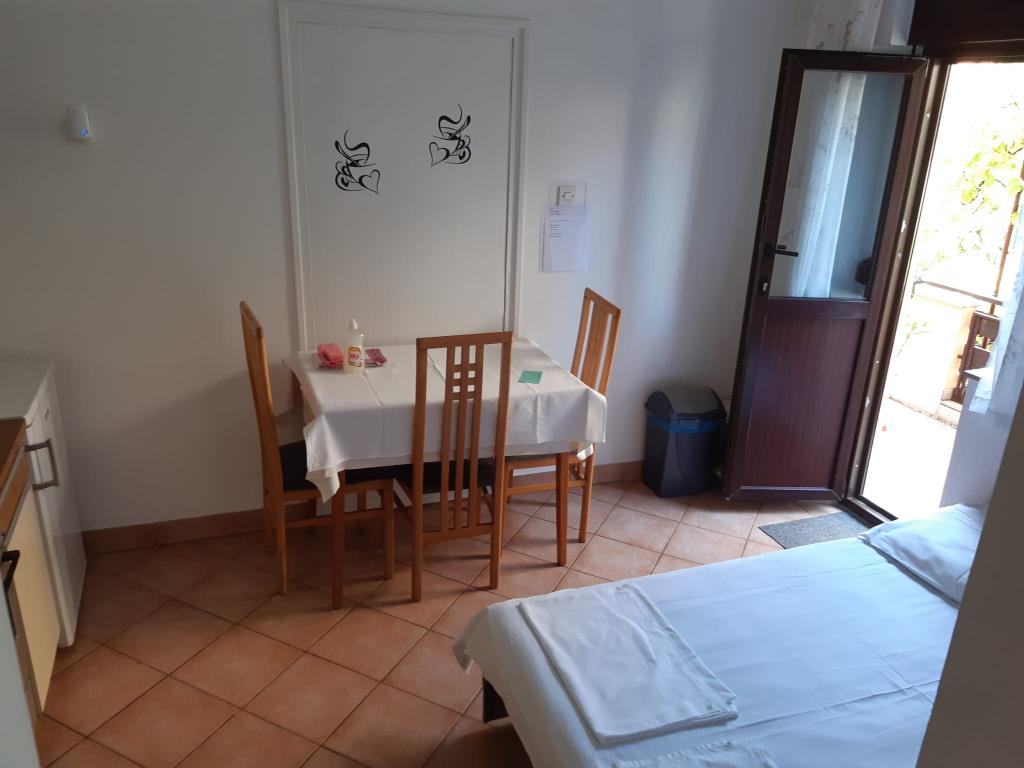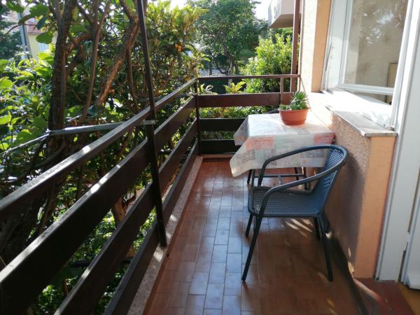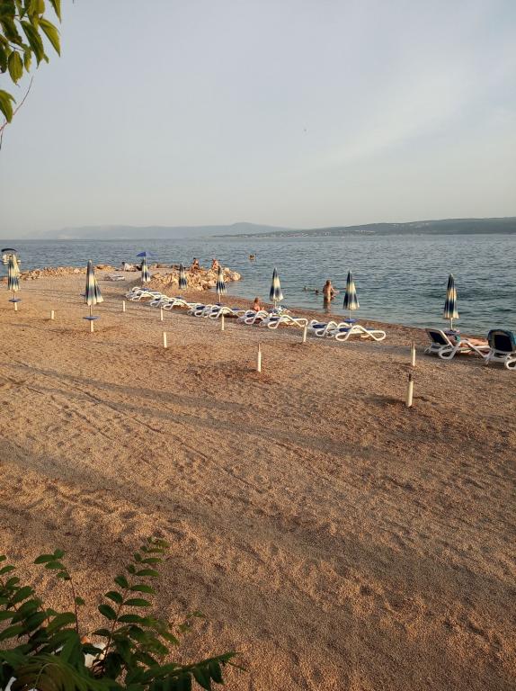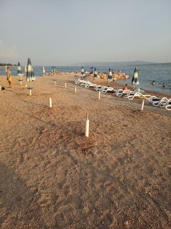 Les appartements sont situés dans la paisible ville de Dramalj, près de Crikvenica, à l'adresse Milovan Muževića 116, à cinq minutes en escaliers de la plage. Dramalj est reliée au centre de Crikvenica par le bus et le train de la ville. La maison dispose de plusieurs logements et les propriétaires y habitent également. Les appartements sont à 170 m de la mer. Les plages sont en galets et en béton. Ils se trouvent à 500 m du spa Thalassothérapie et conviennent aux petites familles. Ils sont situés au premier étage de la maison familiale. Chacun se compose d'une chambre, d'une salle de bain avec douche et d'une cuisine. Ils sont équipés d'une connexion Internet gratuite, de la climatisation, d'une télévision, d'une cuisine avec cuisinière et vaisselle, de draps et de serviettes. L'appartement 1 a 30 m2 : une chambre avec un lit double et un canapé-lit pour 2 personnes, une cuisine et une salle de bain, et il dispose d'un balcon. L'appartement 2 a 35 m2 : une chambre avec un lit double et un canapé pour une personne, et dans la cuisine il y a un canapé-lit de 140 cm de large pour 1-2 personnes, et il dispose d'une grande terrasse. Les animaux sont admis moyennant un supplément de 10 € par nuit.