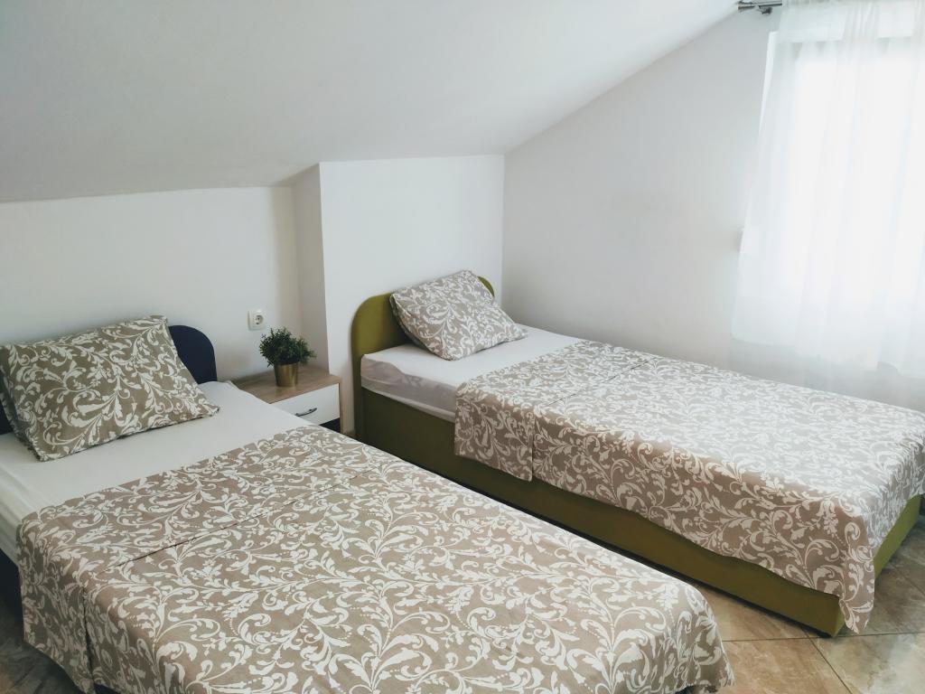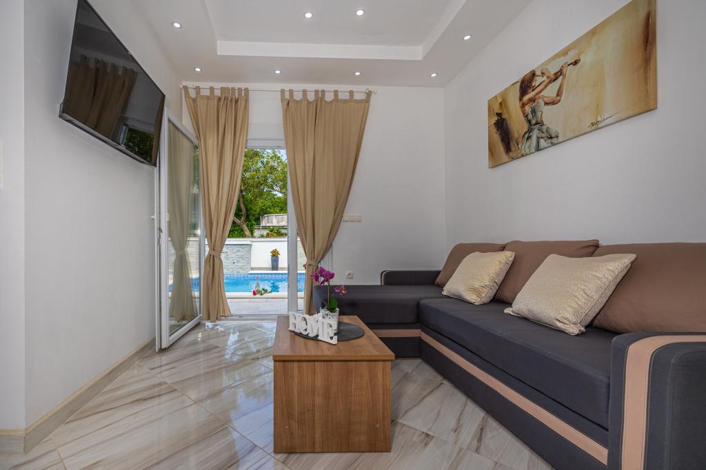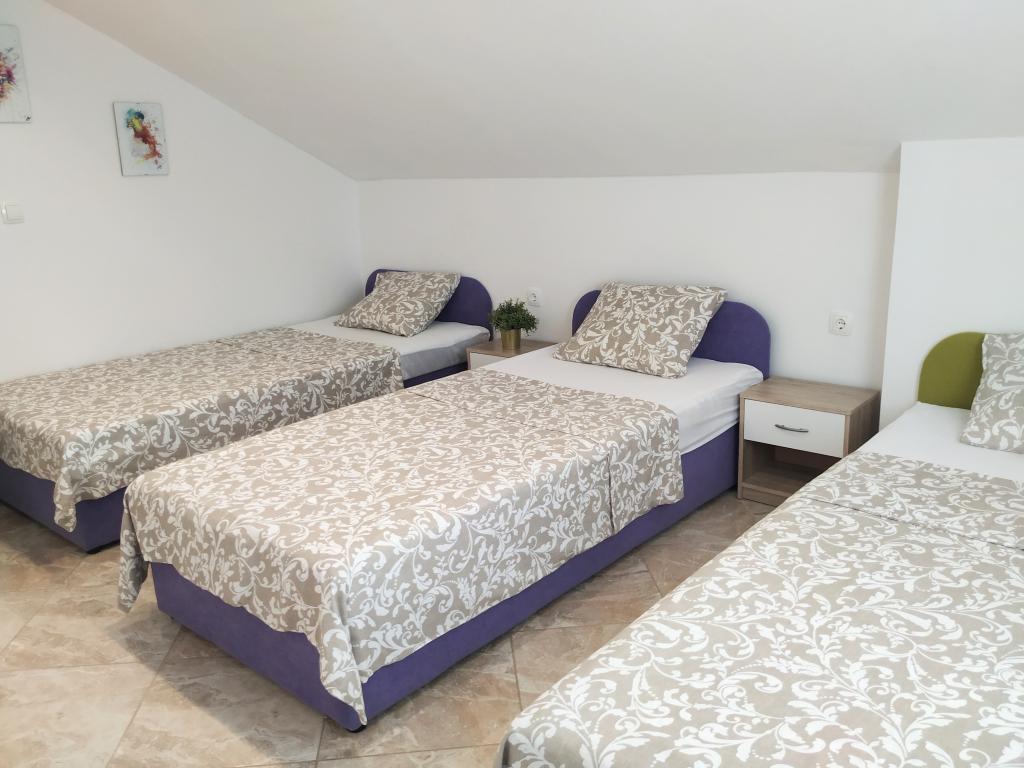 La maison familiale avec appartements est située à Dramalj, un quartier calme de la Riviera de Crikvenica, à seulement 400 mètres de la promenade en bord de mer qui relie Dramalj à Crikvenica. Les appartements A2 + 2 se composent d'une cuisine équipée avec coin repas, salle de bains, 2 chambres dont une avec un lit double et l'autre avec un lit pour 2 personnes et un balcon avec vue sur la mer. Les appartements A3 se composent d'une cuisine équipée avec un coin repas, une salle de bains, 1 chambre avec un lit double et un lit simple et un balcon avec vue sur la mer. L'appartement A5 se compose d'une cuisine équipée avec salon, 2 chambres, une avec un lit double et l'autre avec 3 lits simples. L'appartement dispose d'une spacieuse terrasse de 20m2 avec une vue directe sur la mer. Tous les appartements disposent de la climatisation, de la télévision et d'une connexion Wi-Fi. A côté de la maison il y a un parking privé pour les clients et dans la cour un barbecue. .