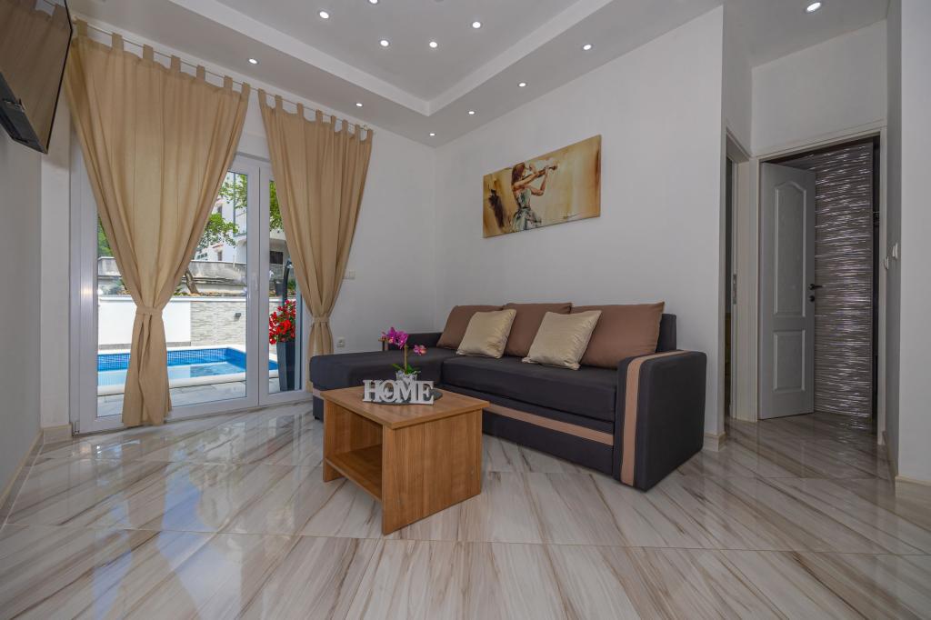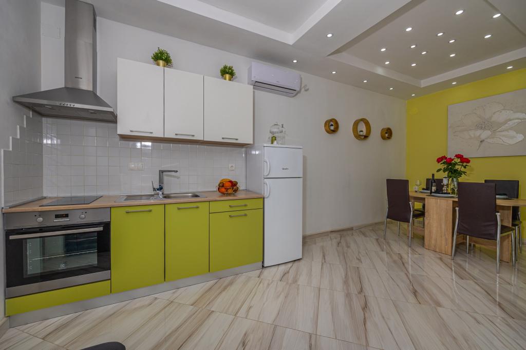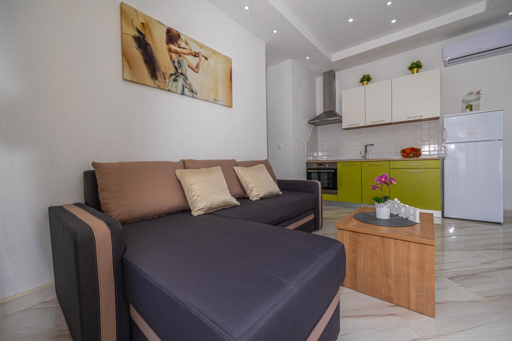 Installations de l'appartement, vue sur la mer, parking, hôtes très gentils et si vous avez besoin d'aide à votre disposition, .. à proximité de la plage, mer propre et plages propres .. nos vacances étaient super et si vous les choisissez. vous ne vous tromperez de rien .., calme et tranquillité, quartier calme de la ville