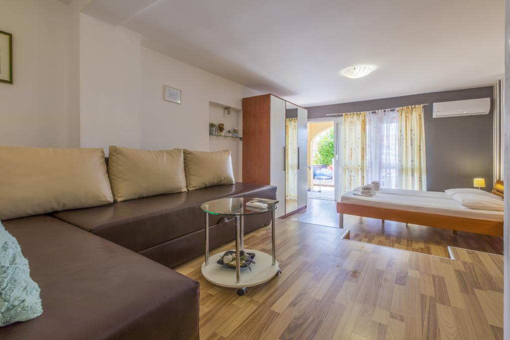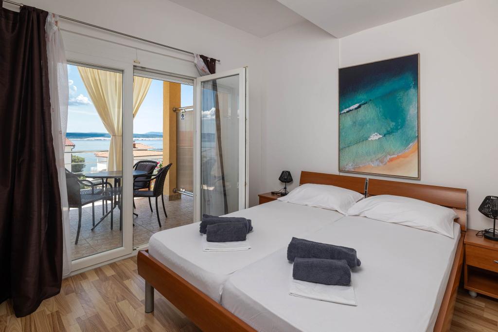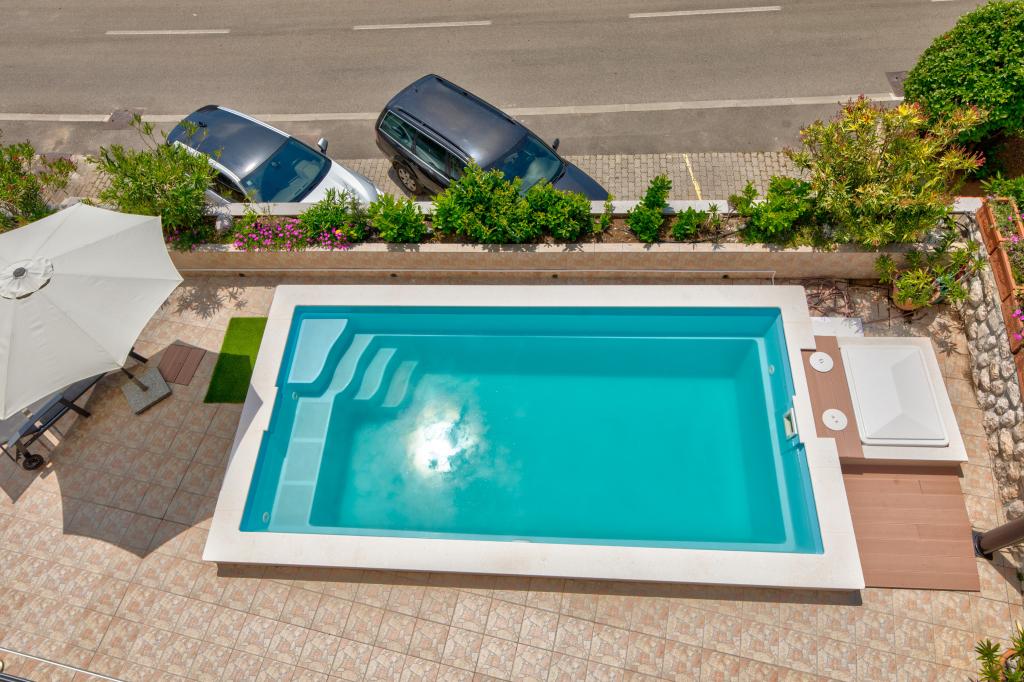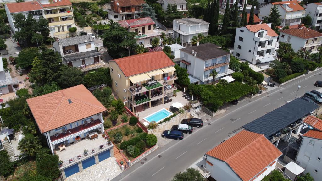 La maison avec des appartements modernes et bien équipés est située au deuxième rang de la mer, à proximité d'un restaurant, d'un marché et d'une boulangerie. L'établissement dispose d'une grande terrasse avec piscine, transats et barbecue extérieur. Il y a un parking pour les invités devant la maison. Au rez-de-chaussée se trouvent le studio A1 (ID:45200) et l'appartement A2 (ID:45382) avec deux chambres, deux salles de bains et un salon spacieux avec cuisine. Au 1er étage se trouvent les appartements A4 (ID:45381), A5 (ID:45380) et A6 (ID:45235) avec vue mer, et au dernier étage se trouve l'appartement en attique A7 (ID:45234) qui offre un confort exceptionnel.