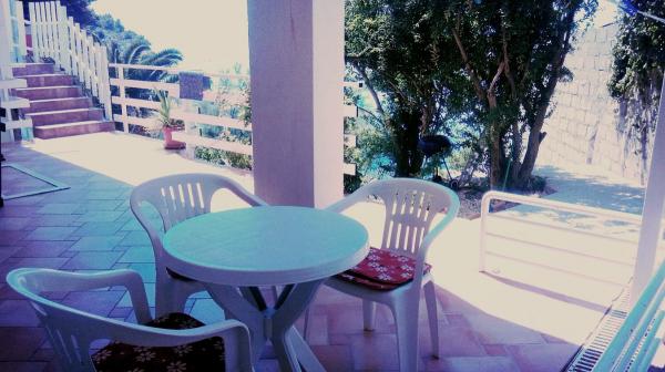 Maison de quatre appartements, située à 10m de la mer. APP1(2), APP2(2+2), APP3(2+1), APP4(3+1). Tous les appartements sont équipés de : Climatisation, TV satellite, WI-FI, place de parking, vue mer. Juste en dessous de la maison se trouve une plage à laquelle vous avez un accès direct par des escaliers.