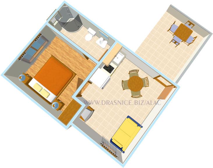 Appartements ALAC est un centre touristique moderne qui vous donne un sentiment de la maison avec des appartements modernes. Ils sont situés dans Drasnice, près de Makarska, et sont une occasion idéale pour passer des vacances. L'installation est située à 2 m des longues plages de galets et, tandis que les appartements sont équipés d'Internet, air conditionné, TV, cuisine moderne. Drasnice Adriatique bijou caractérisé par des gens sympathiques et une oasis de paix.