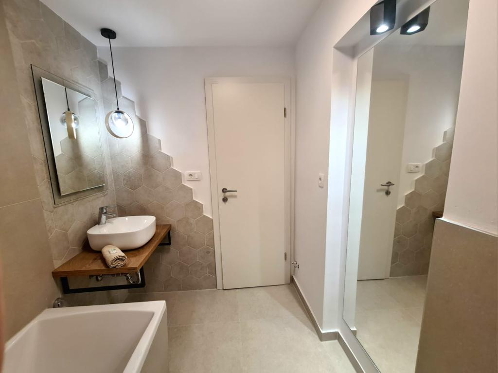 Le Gabriela maison est une maison très bien pour se détendre. Les appartements sont très spacieux et propre. La voiture peut être sur un parking fermé, parking près de la maison. La plage est très propre et belle. Le Sulenta couple est un très bon animateur et très agréable, qui est à tout moment et va nous aider. Vous parlez très bien l'anglais et l'allemand. La maison est vraiment à un ami. Note 1 *