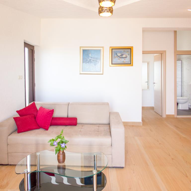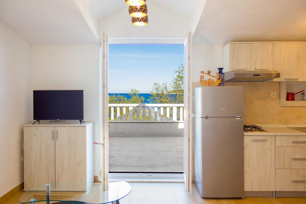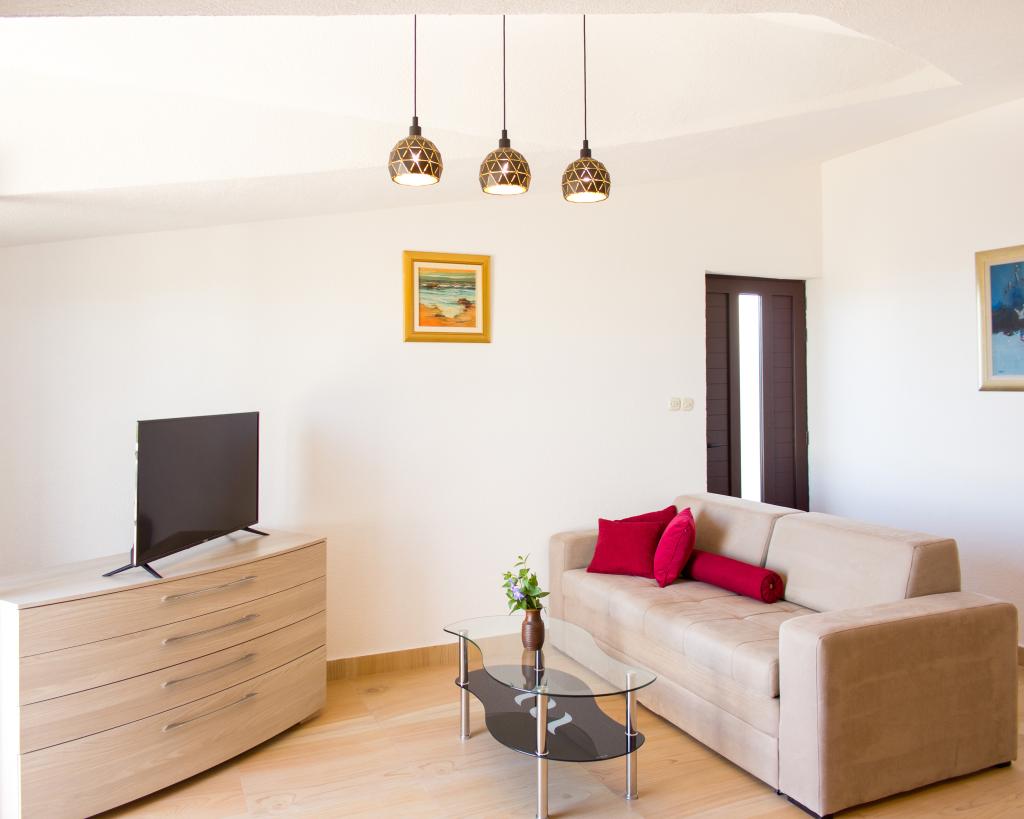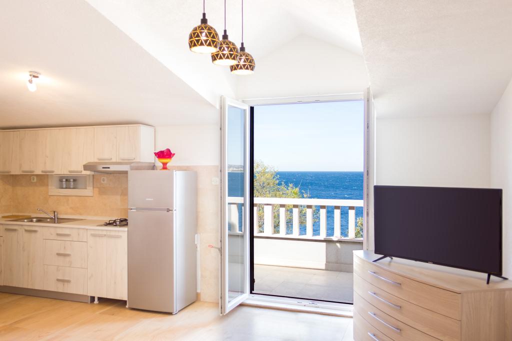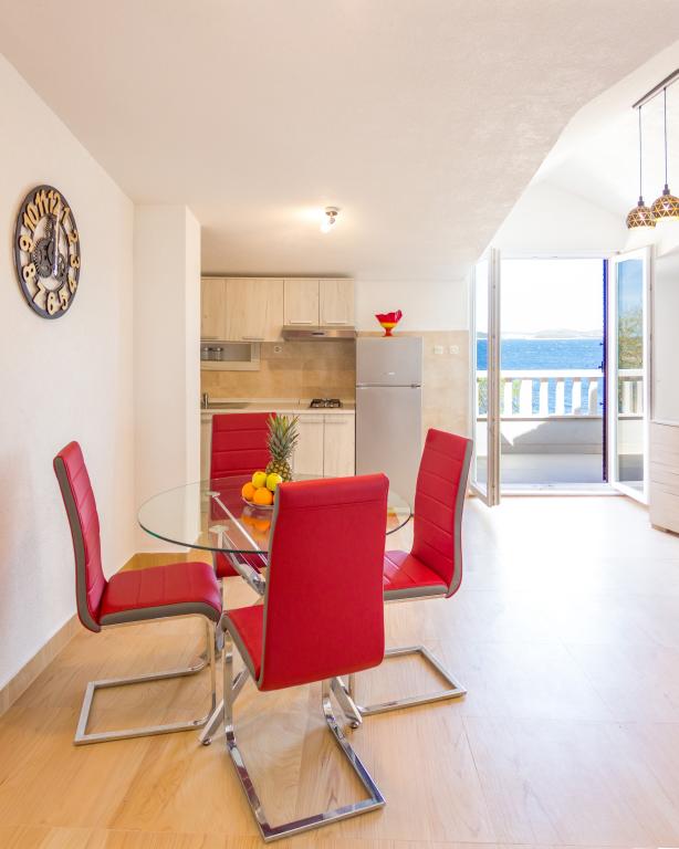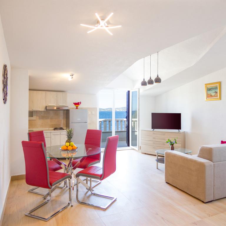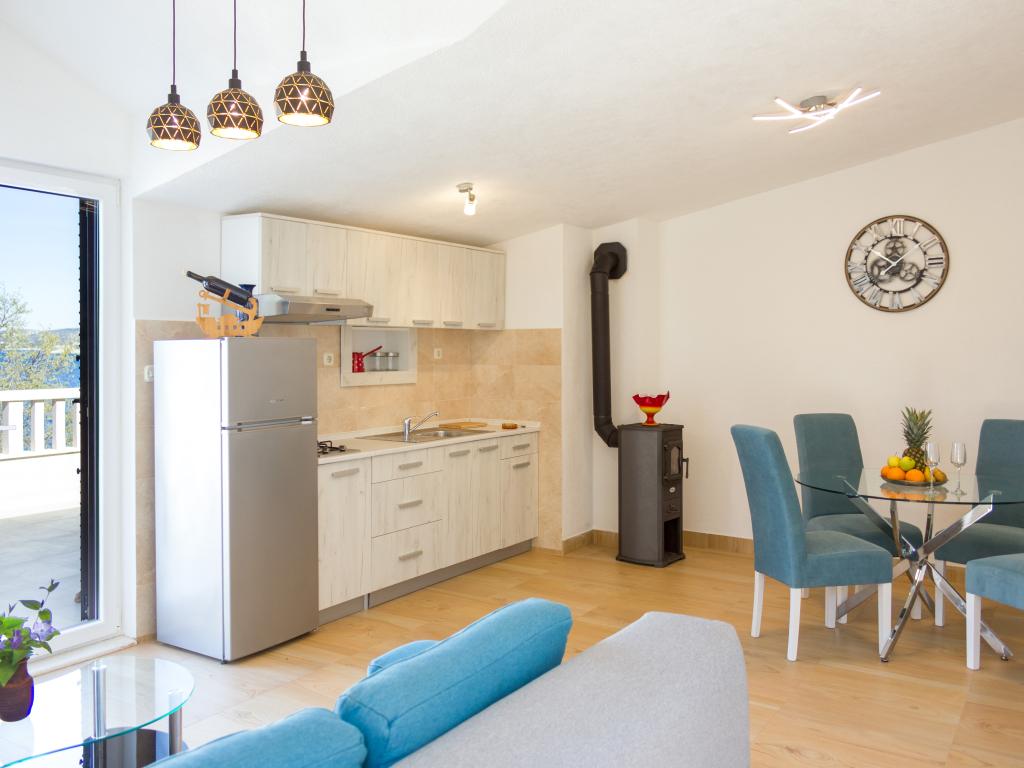 Les appartements Val et Sol sont situés sur l'île de Drvenik Mali, dans la baie de Mala Rina, en première ligne de mer, à 70 mètres de la côte. Ils comprennent une cuisine équipée, une salle à manger, un salon avec télévision et canapé-lit, une chambre avec ventilateur, une terrasse avec vue magnifique et une salle de bain avec sèche-cheveux. Les deux appartements offrent une vue sur la mer. Il est possible de louer l'étage entier. Les appartements Val et Sol, à Drvenik Mali, offrent un parking gratuit, un barbecue et une connexion Internet gratuite. Sur l'île de Drvenik Mali, vous trouverez une boutique (avec un contenu limité), un restaurant et un café sur la plage. Nous vous recommandons donc vivement d'apporter de la nourriture, des boissons et autres produits de première nécessité.