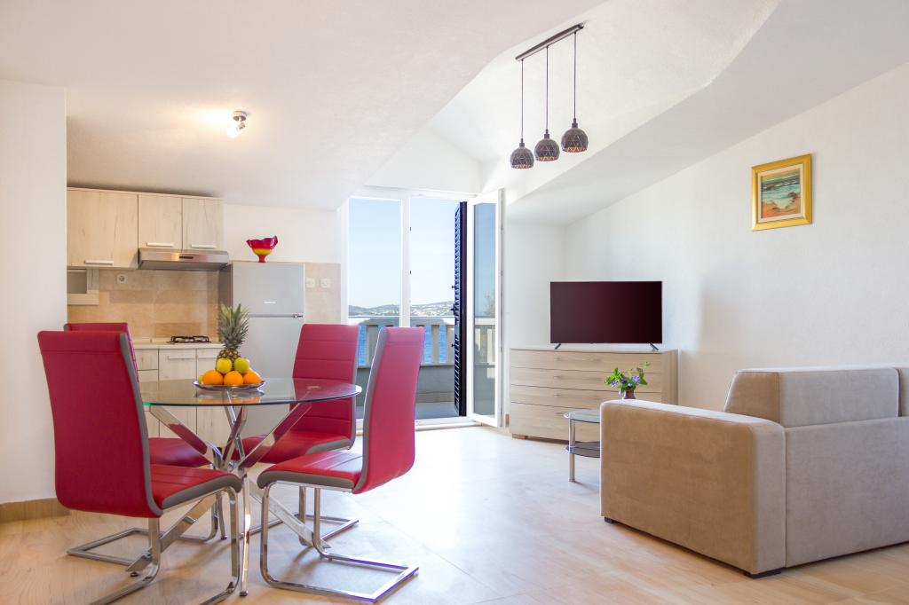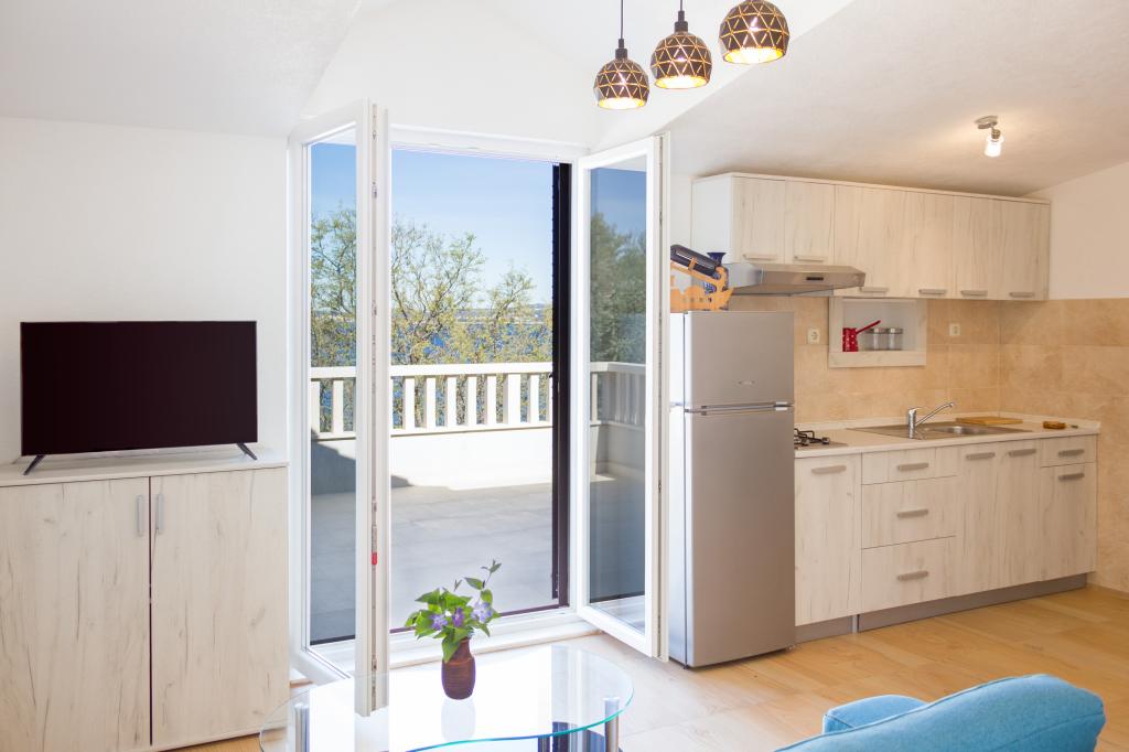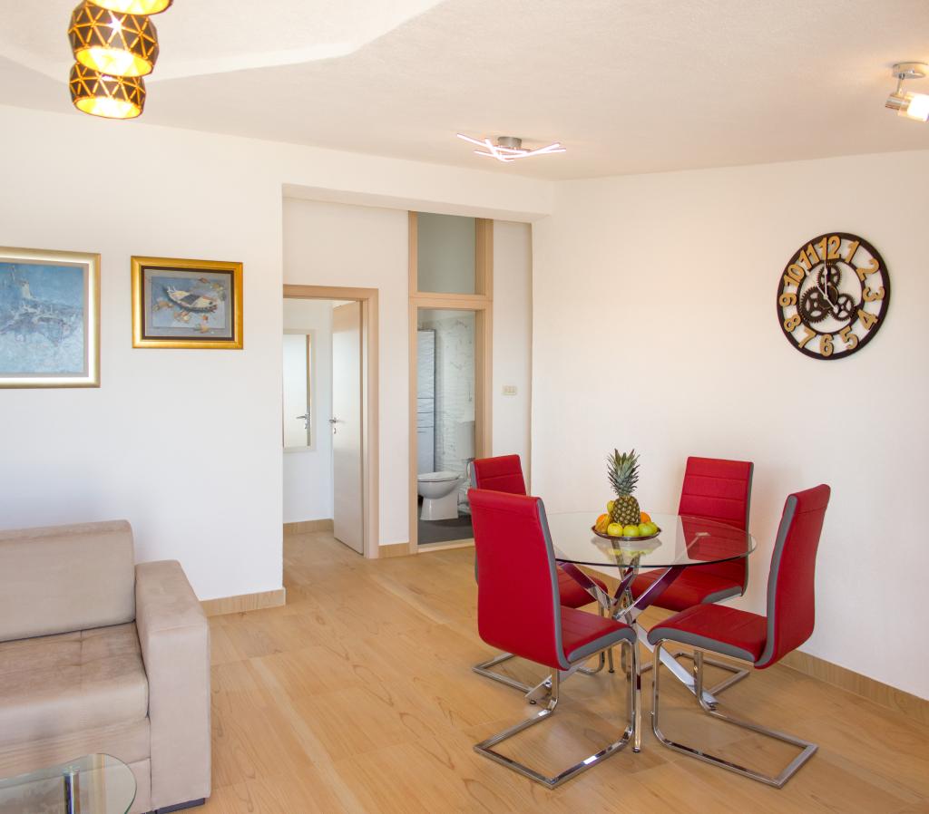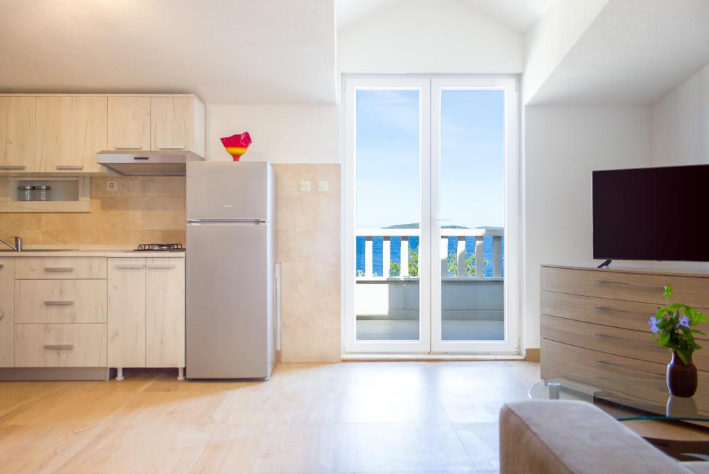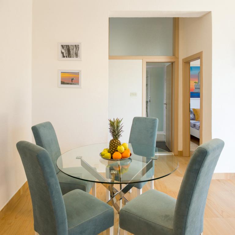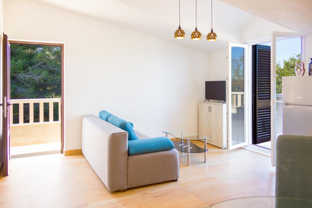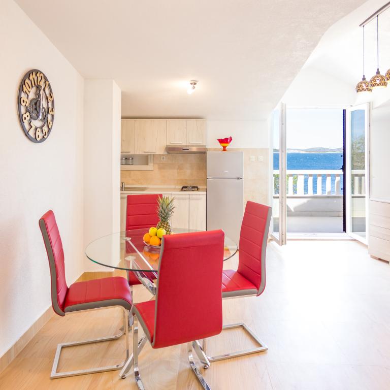 Les appartements Val et Sol sont situés sur l'île de Drvenik Mali, dans la baie de Mala Rina, en première ligne de mer, à 70 mètres de la côte. Ils comprennent une cuisine équipée, une salle à manger, un salon avec télévision et canapé-lit, une chambre avec ventilateur, une terrasse avec vue magnifique et une salle de bain avec sèche-cheveux. Les deux appartements offrent une vue sur la mer. Il est possible de louer l'étage entier. Les appartements Val et Sol, à Drvenik Mali, offrent un parking gratuit, un barbecue et une connexion Internet gratuite. Sur l'île de Drvenik Mali, vous trouverez une boutique (avec un contenu limité), un restaurant et un café sur la plage. Nous vous recommandons donc vivement d'apporter de la nourriture, des boissons et autres produits de première nécessité.