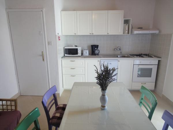 Les appartements Villa Ana sur la magnifique île de Drvenik Mali près de Trogir, situés au premier rang de la mer, avec une vue dégagée sur la mer cristalline, vous offriront des vacances inoubliables pour le corps et l'esprit. Les senteurs d'herbes méditerranéennes et médicinales et l'abondance de plages marines sur toute l'île permettent à chaque visiteur de trouver sa propre oasis de paix. L'île de Drvenik Mali est quotidiennement reliée par une ligne de ferry avec Trogir, à environ 8 NM, avec une superficie d'environ 3,5 km. En plus de belles plages de galets, de rochers et de sable, c'est une expérience particulière de plonger sous la surface de la mer. Le temps ne s'arrête pas dans cette petite oasis, mais l'horloge tourne certainement beaucoup plus lentement.