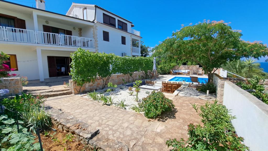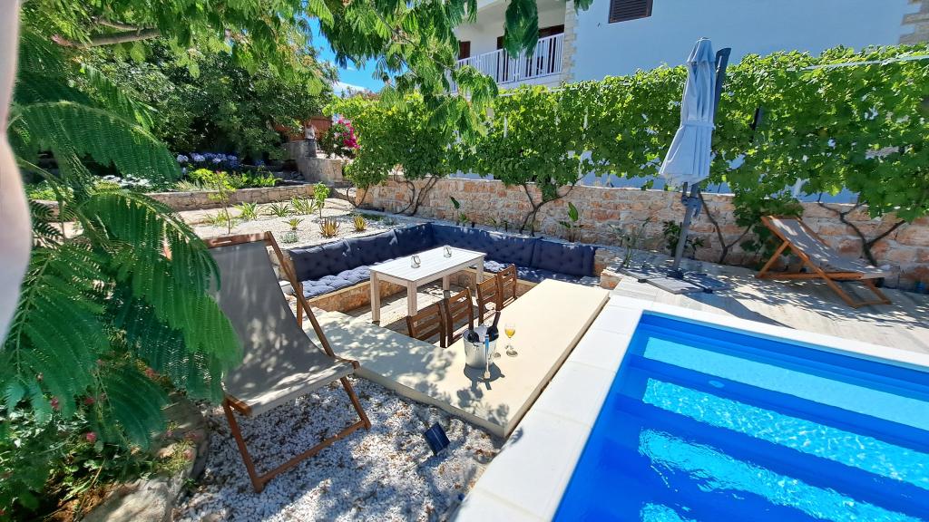 Les Appartements Villa Knez proposent des appartements modernes et entièrement équipés avec piscine, barbecue et un extérieur agréable pour les réunions. Drvenik Mali (Ploča) est une île où le temps s'est arrêté. L'île est apprivoisée, la côte est accessible, vous pouvez donc nager autour de toute l'île. Il est souhaitable pour ceux qui aspirent à une nature intacte, une mer propre, de belles plages, des plongées nocturnes et une détente loin de la civilisation. C'est le bon endroit pour les Robinson modernes. Drvenik Mali est une île de Dalmatie centrale qui appartient à la ville de Trogir, dont elle se trouve à 10 NM. Il est relié par une ligne de ferry trois fois par jour. La navigation dure 50 minutes. La végétation se compose d'olives, de caroubiers, d'herbes méditerranéennes parfumées et médicinales. Le magasin est modestement approvisionné en produits de base et il est recommandé d'acheter de la nourriture à Trogir. Il n'y a pas de discothèques. Tout est à proximité, l'île est idéale pour les balades. Les appartements sont situés dans le vieux village de Petomavar et sont accessibles en voiture, et chaque appartement dispose d'un parking sécurisé