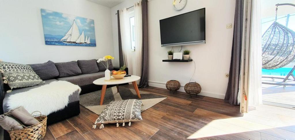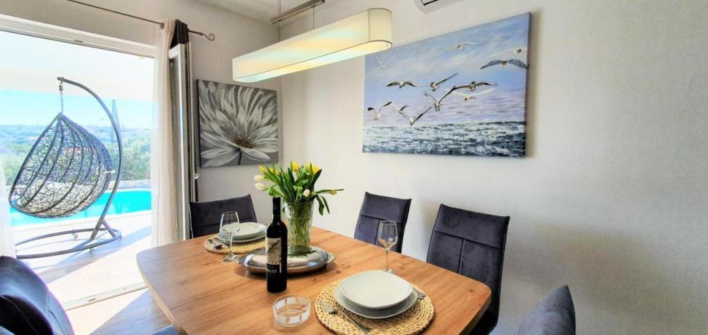 La maison de vacances Ana Laguna est située sur l'île de Drvenik Mali, près de Trogir et propose un hébergement climatisé avec une piscine privée. Il est situé à 200 mètres de la plage Vela Rina. La maison dispose de 3 chambres, 2 salles de bains, du linge de maison, des serviettes, une télévision par câble à écran plat, une salle à manger, une cuisine entièrement équipée et un balcon donnant sur la piscine. Vous pourrez prendre vos repas dans le coin repas extérieur donnant sur le jardin.